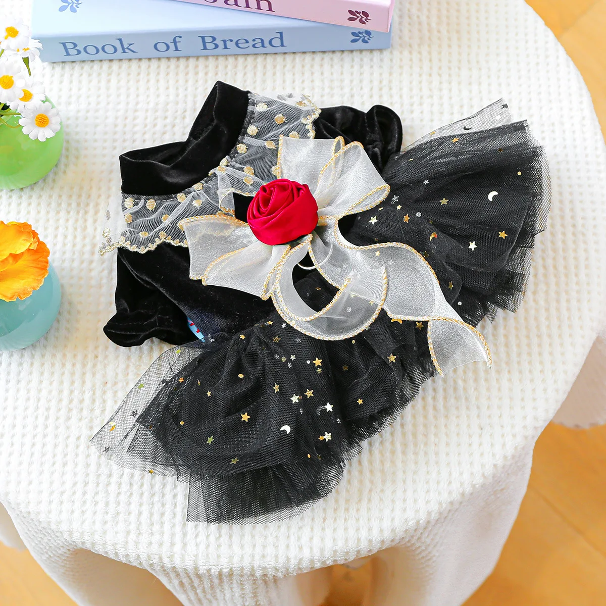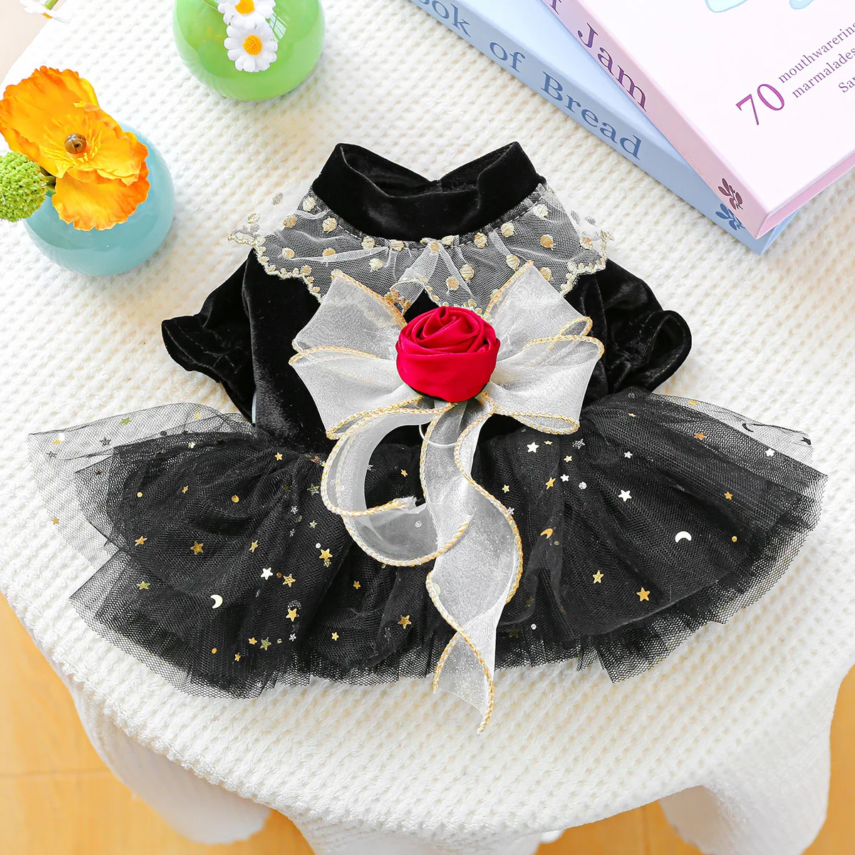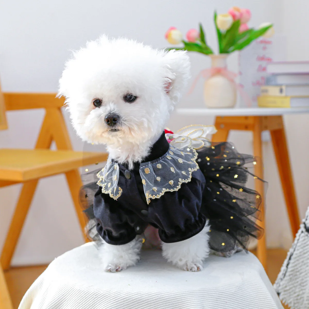 Vestidos clásicos de terciopelo para mascotas, con lentejuelas brillantes, adornos florales y de mariposas, vestido de princesa para perros pequeños, primavera y verano