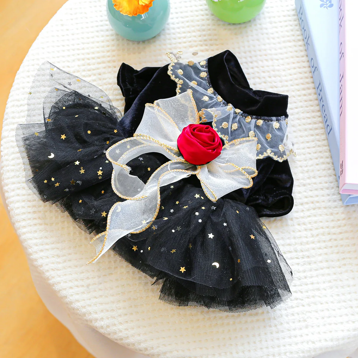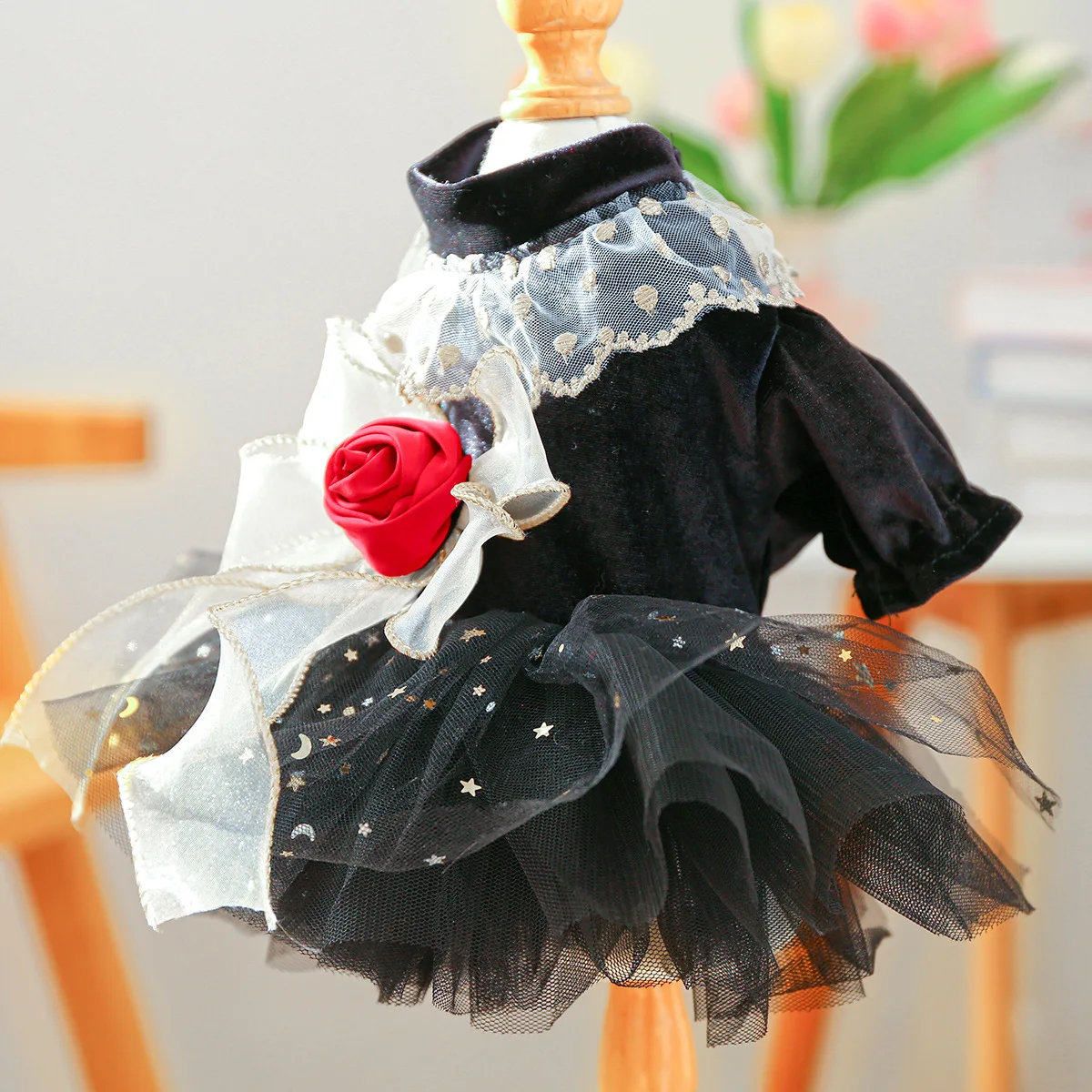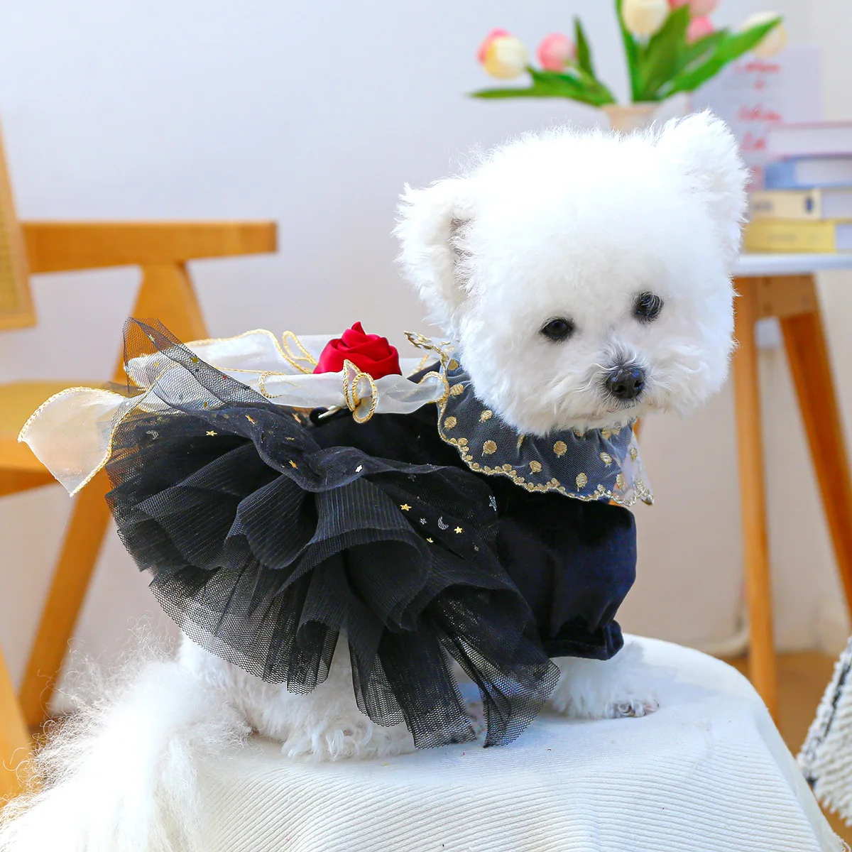 Vestidos clásicos de terciopelo para mascotas, con lentejuelas brillantes, adornos florales y de mariposas, vestido de princesa para perros pequeños, primavera y verano