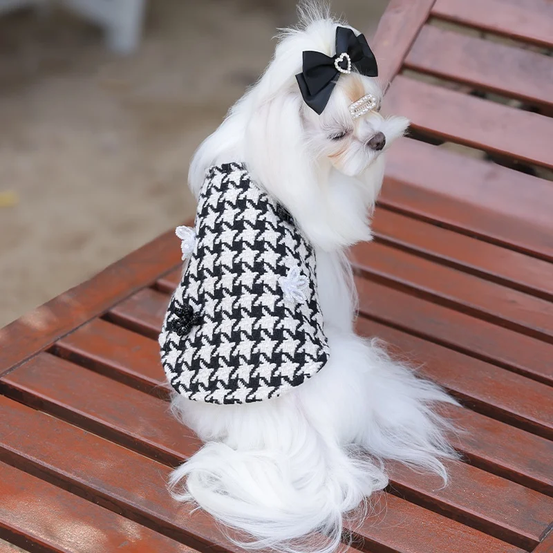 Vestidos a cuadros de Tweed para perros pequeños, vestido de princesa para perros, vestido de boda para mascotas, ropa Formal para fiesta de cumpleaños para cachorros, traje de invierno para perros
