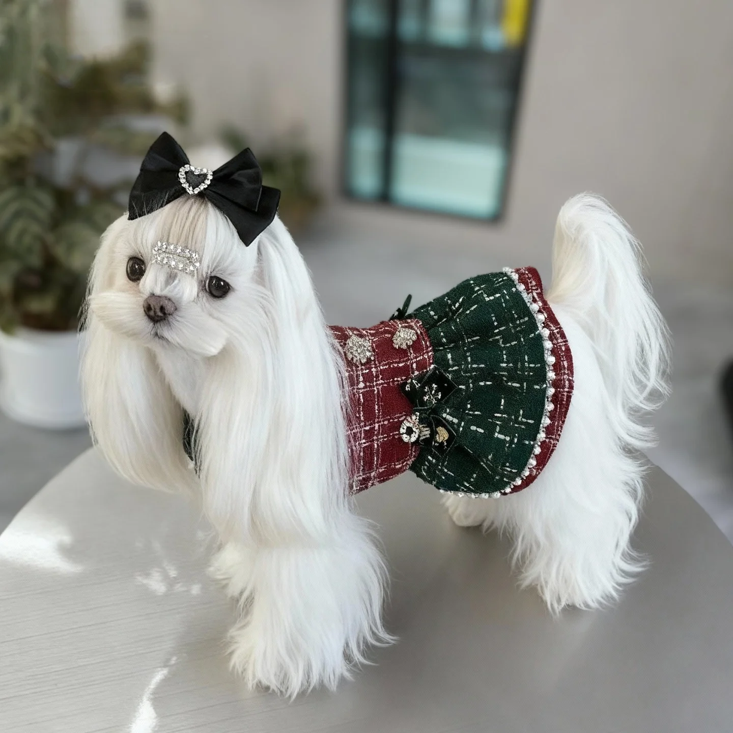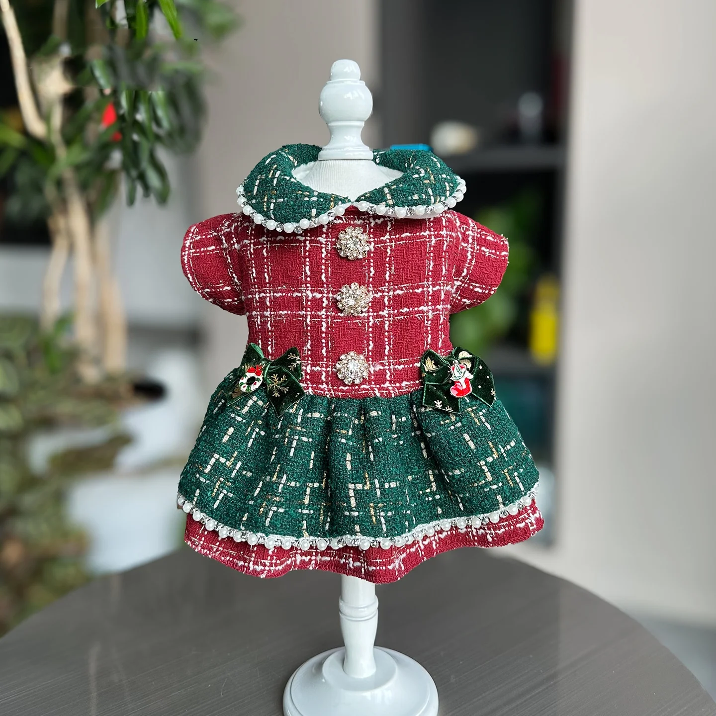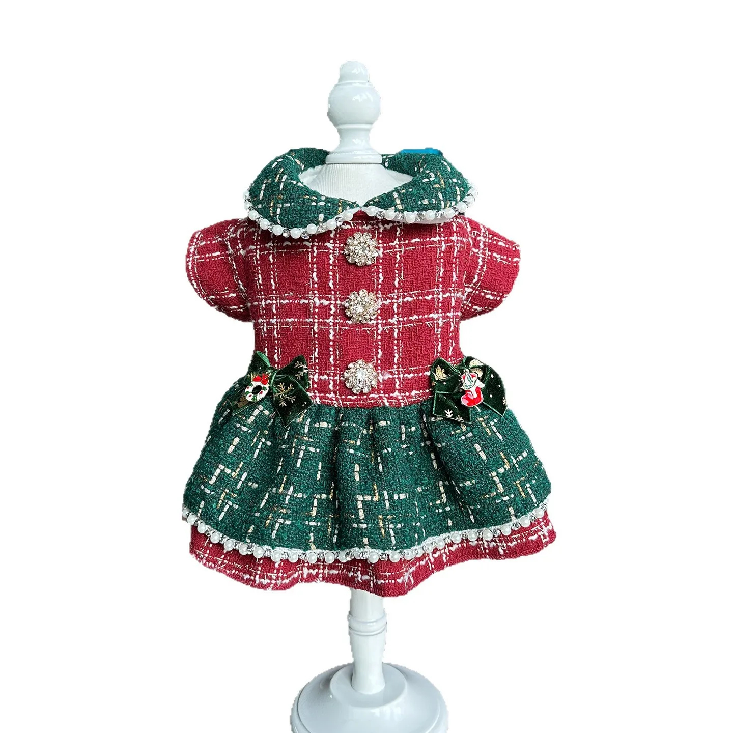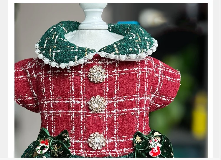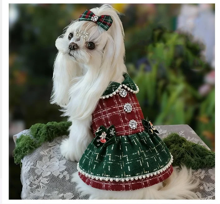 Vestidos a cuadros de Tweed para perros pequeños, vestido de princesa para perros, vestido de boda para mascotas, ropa Formal para fiesta de cumpleaños para cachorros, traje de invierno para perros