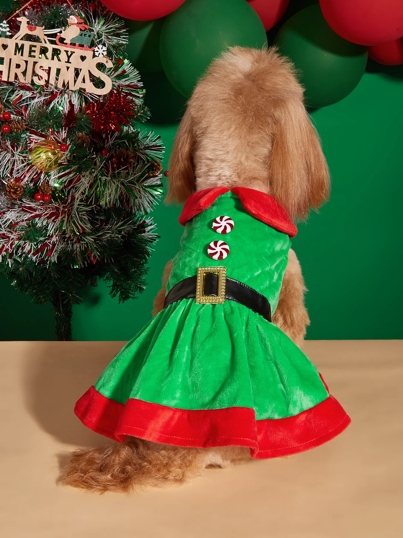 Vestidos de espíritu de perro para perros pequeños, collares, disfraz de cachorro con cinturón, botones en forma de caramelo, ropa cálida para mascotas, aplicación suave