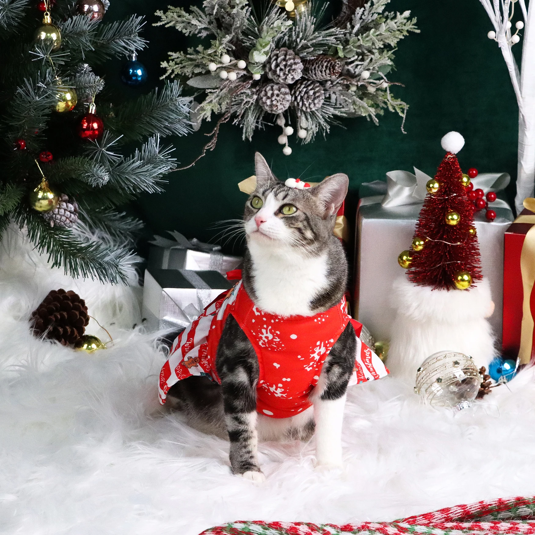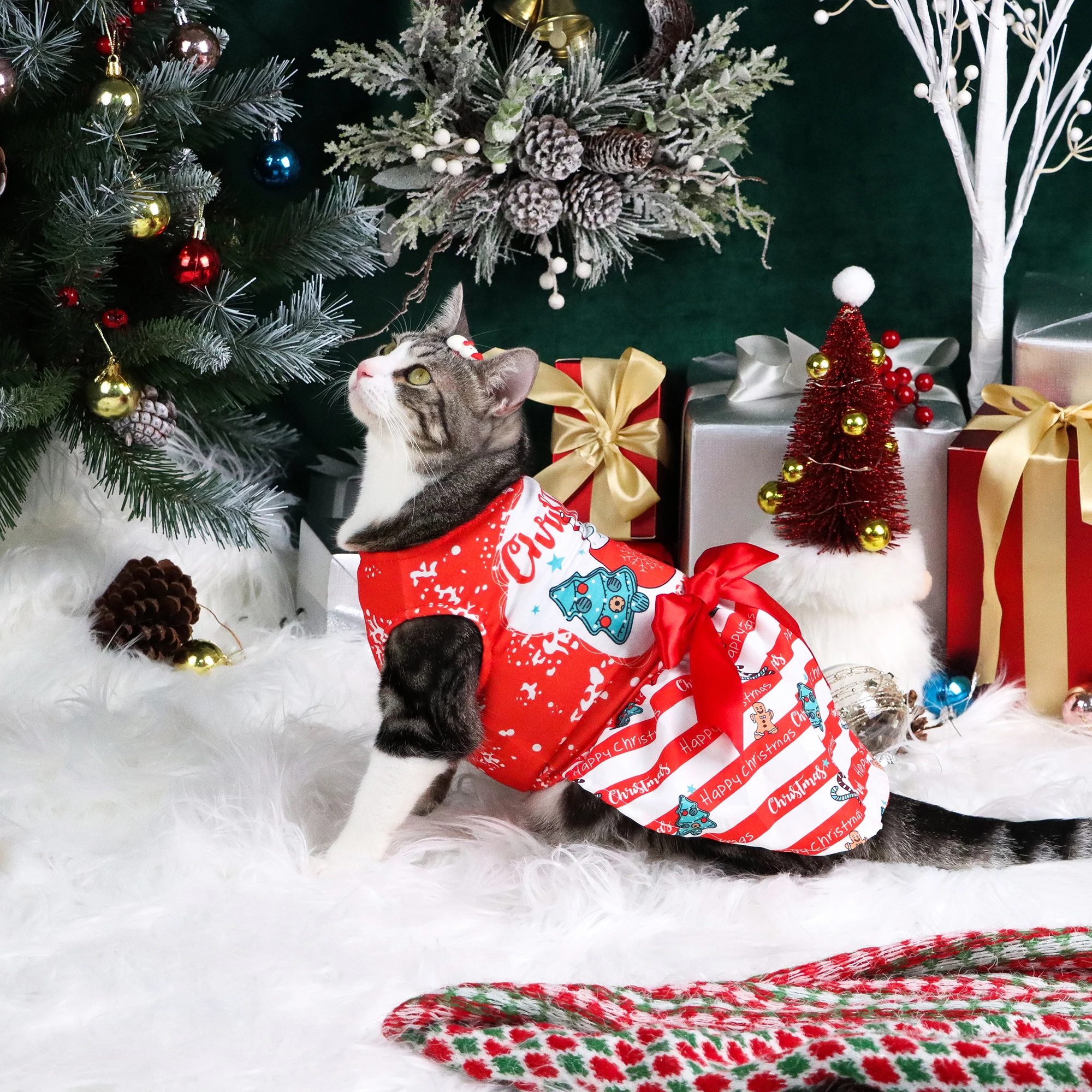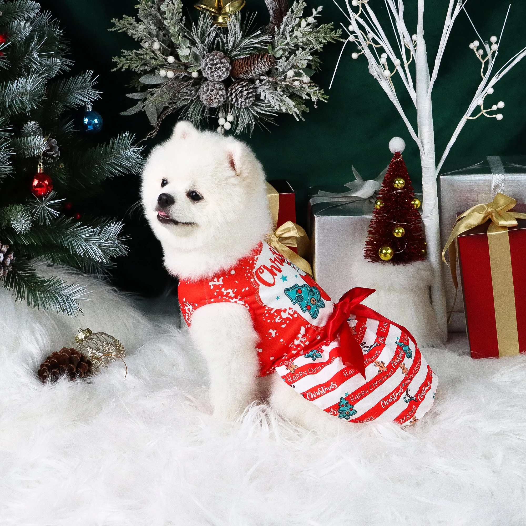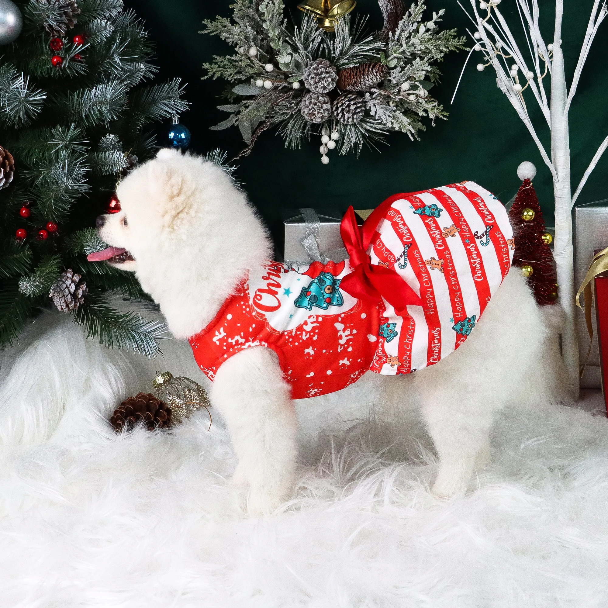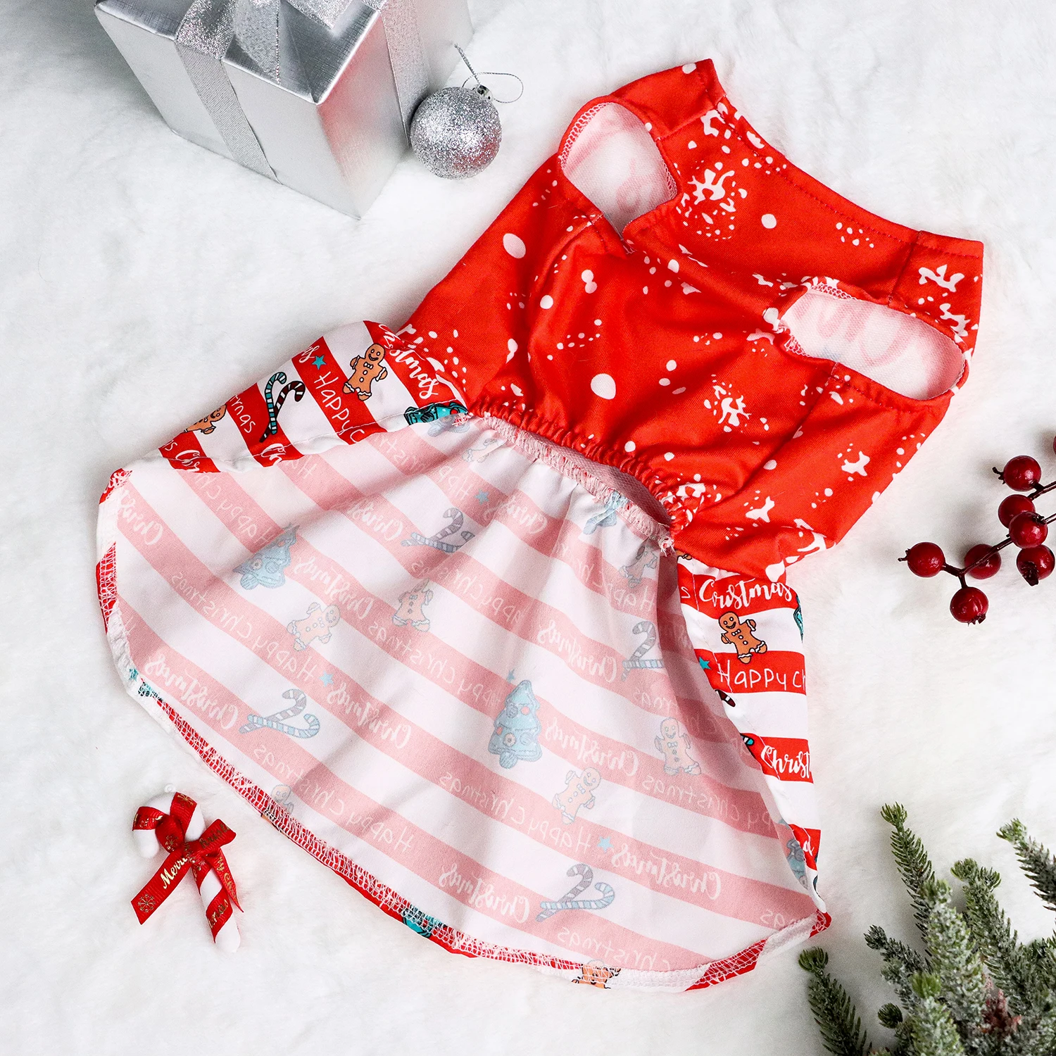 Vestidos felices navideños para perros, ropa a rayas para cachorros con lindo estampado de pan de jengibre, disfraz hermoso y cómodo con lazo Chr
