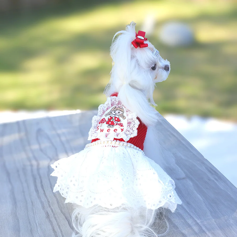 Vestidos lolita para perros pequeños, vestido de princesa de encaje para perros, vestido de boda para mascotas, ropa Formal para fiesta de cumpleaños para cachorros, vestido de invierno para perros