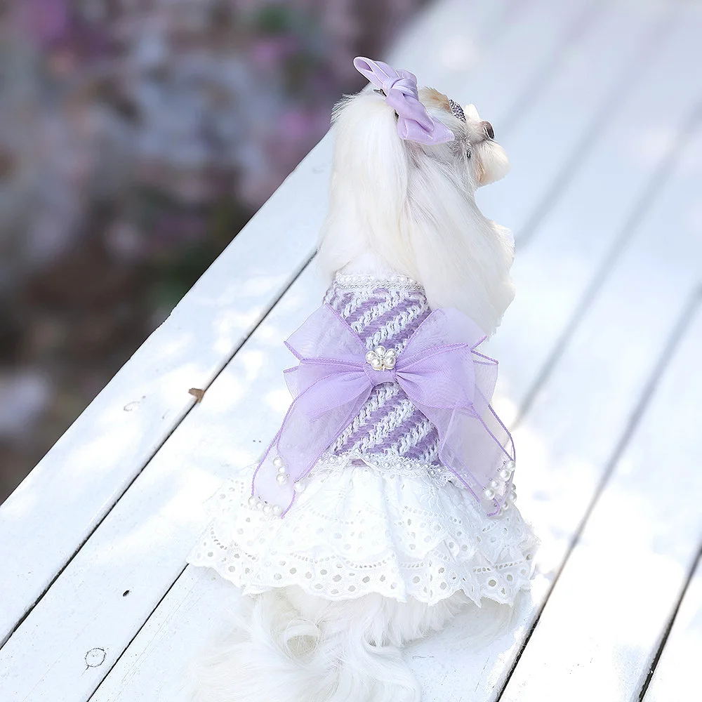 Vestidos lolita de Tweed para perros pequeños, vestido de princesa para perros, vestido de boda para mascotas, ropa Formal para fiesta de cumpleaños, vestido de tul para perros