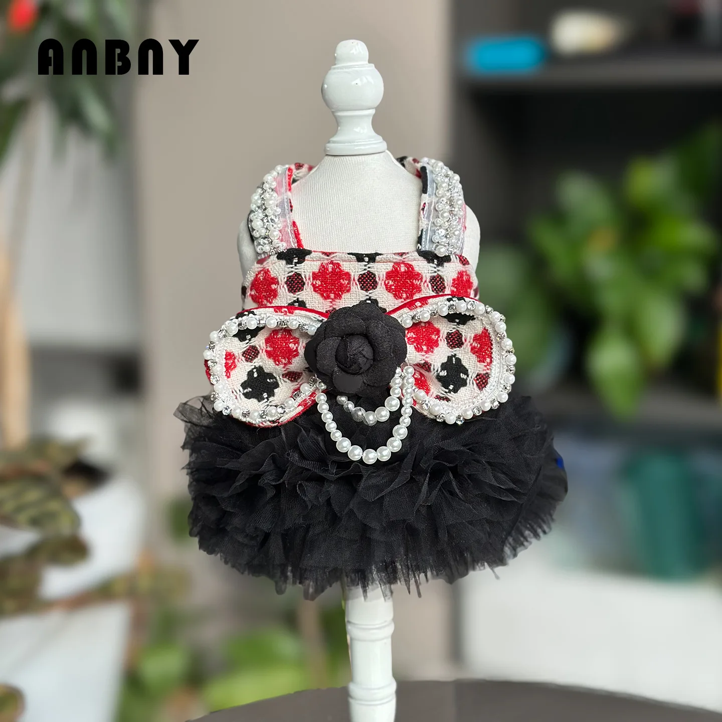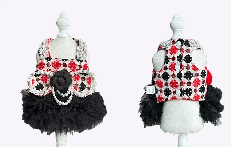 Vestidos lolita de Tweed para perros pequeños, vestido de princesa para perros, vestido de boda para mascotas, ropa Formal para fiesta de cumpleaños, vestido de tul para perros