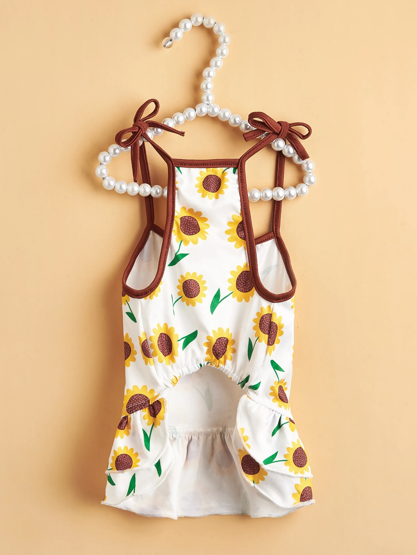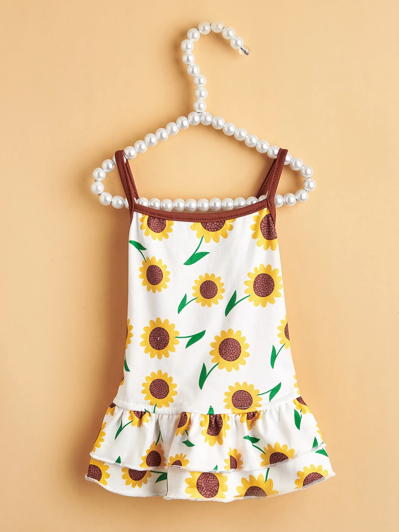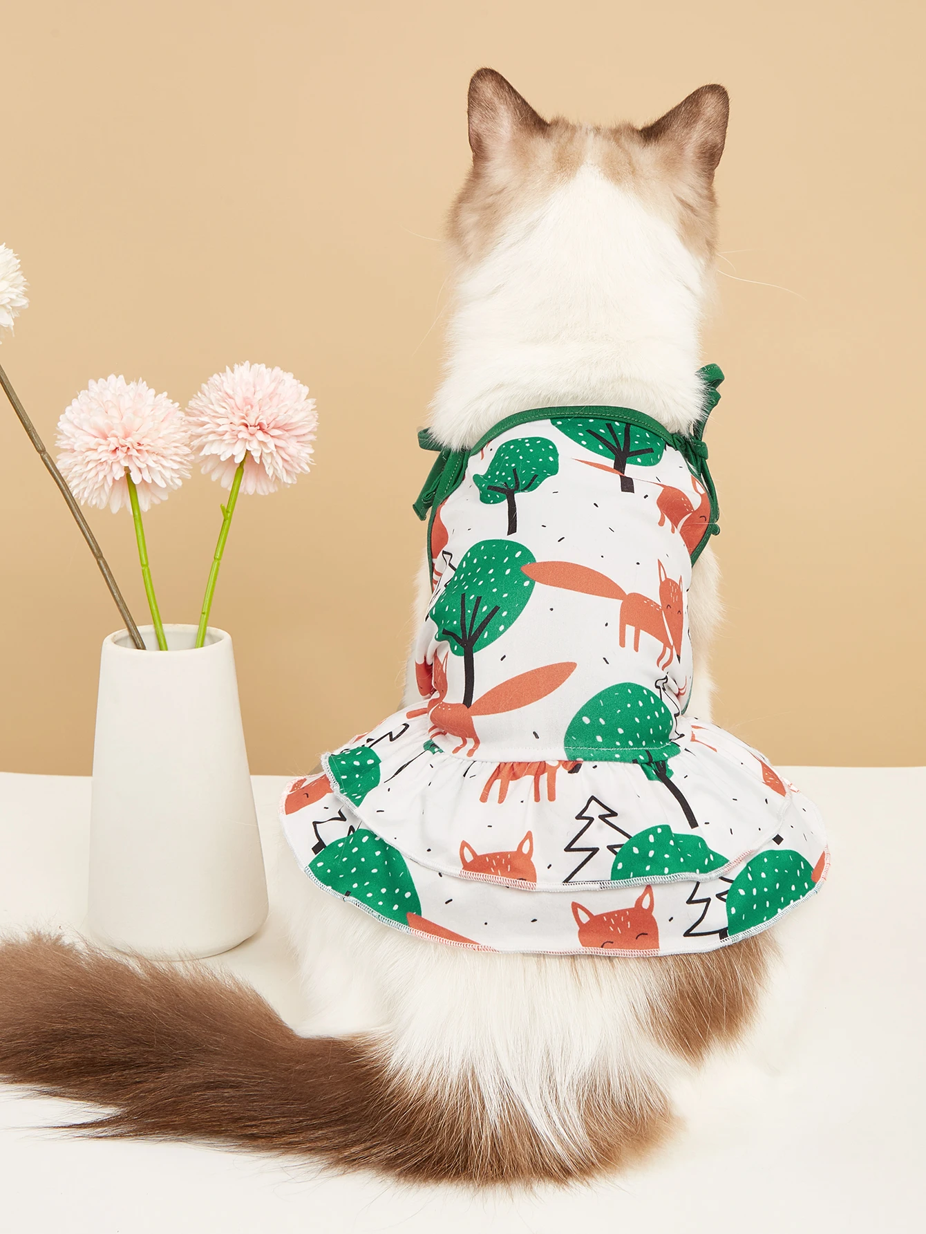 Vestidos para mascotas multiestilo, estampado de girasol y árbol de zorro, tirantes, dobladillo con volantes de doble capa, perfecto para gatos/perros, fiesta diaria