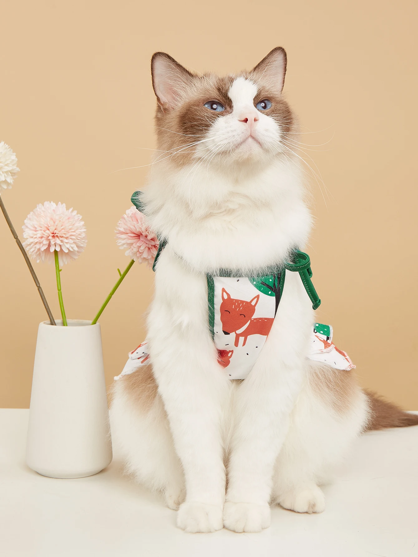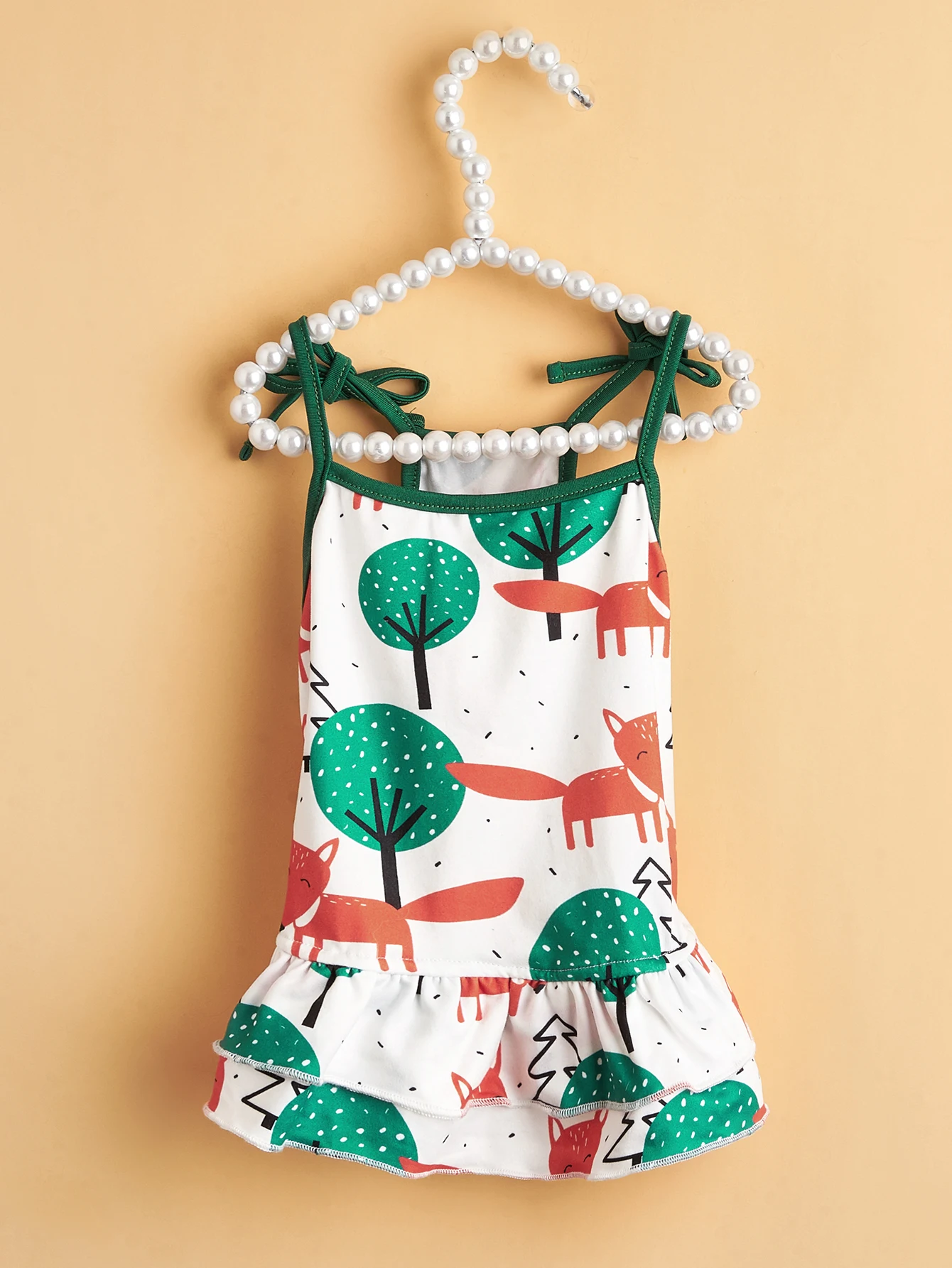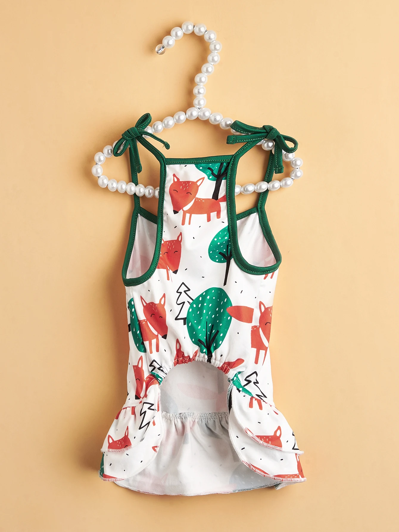Vestidos para mascotas multiestilo, estampado de girasol y árbol de zorro, tirantes, dobladillo con volantes de doble capa, perfecto para gatos/perros, fiesta diaria