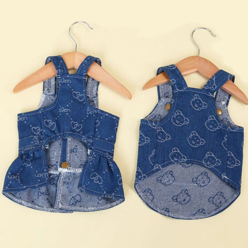 Vestidos de mezclilla para perros pequeños, ropa para cachorros y niñas con anillo de correa y bonito patrón, ropa de verano para gatos con anillo en D, azul marino