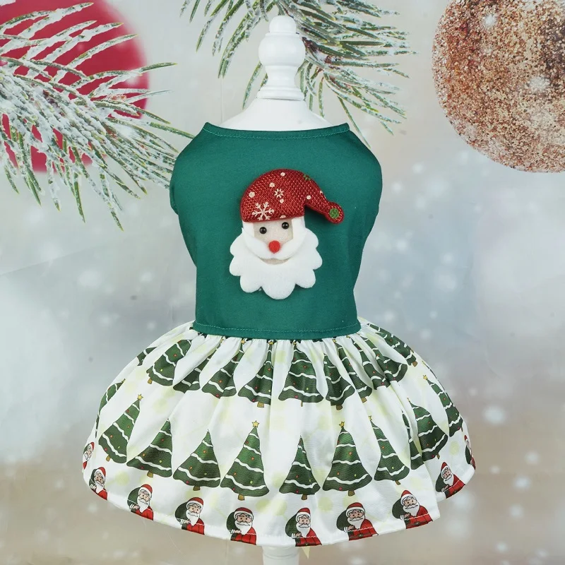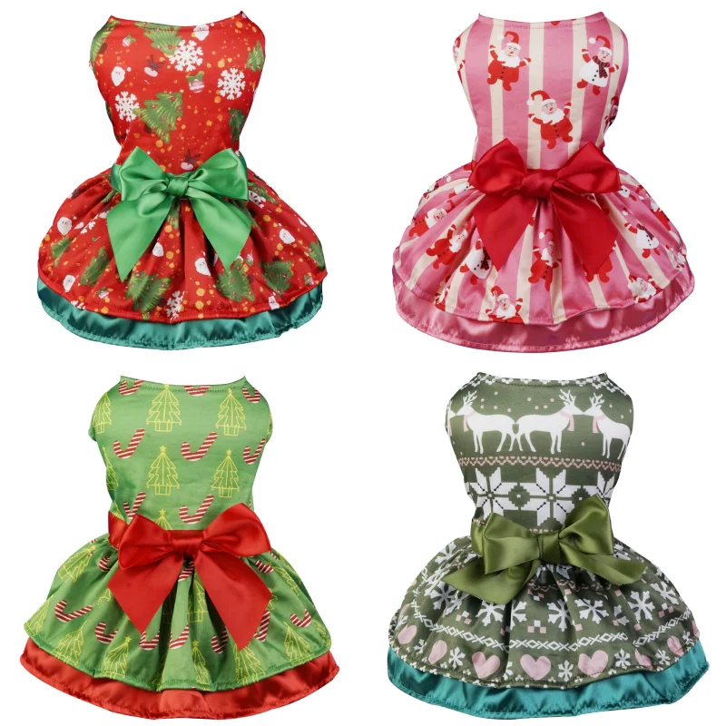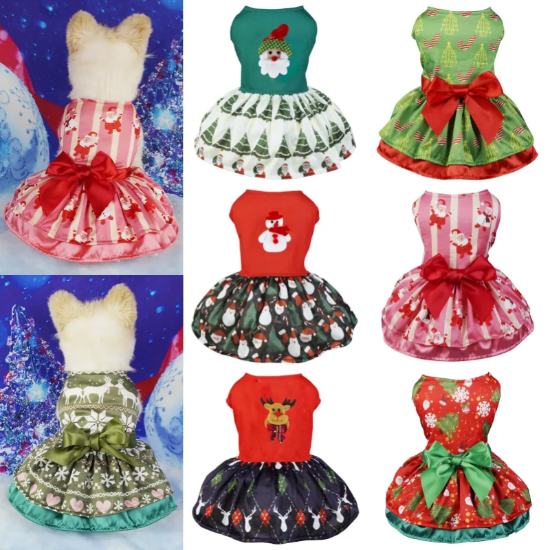 Vestidos navideños para perros pequeños, ropa para perros con lazo a la moda, falda para cachorros, disfraces de gato con estampado bonito, vestido de princesa para mascotas de Año Nuevo