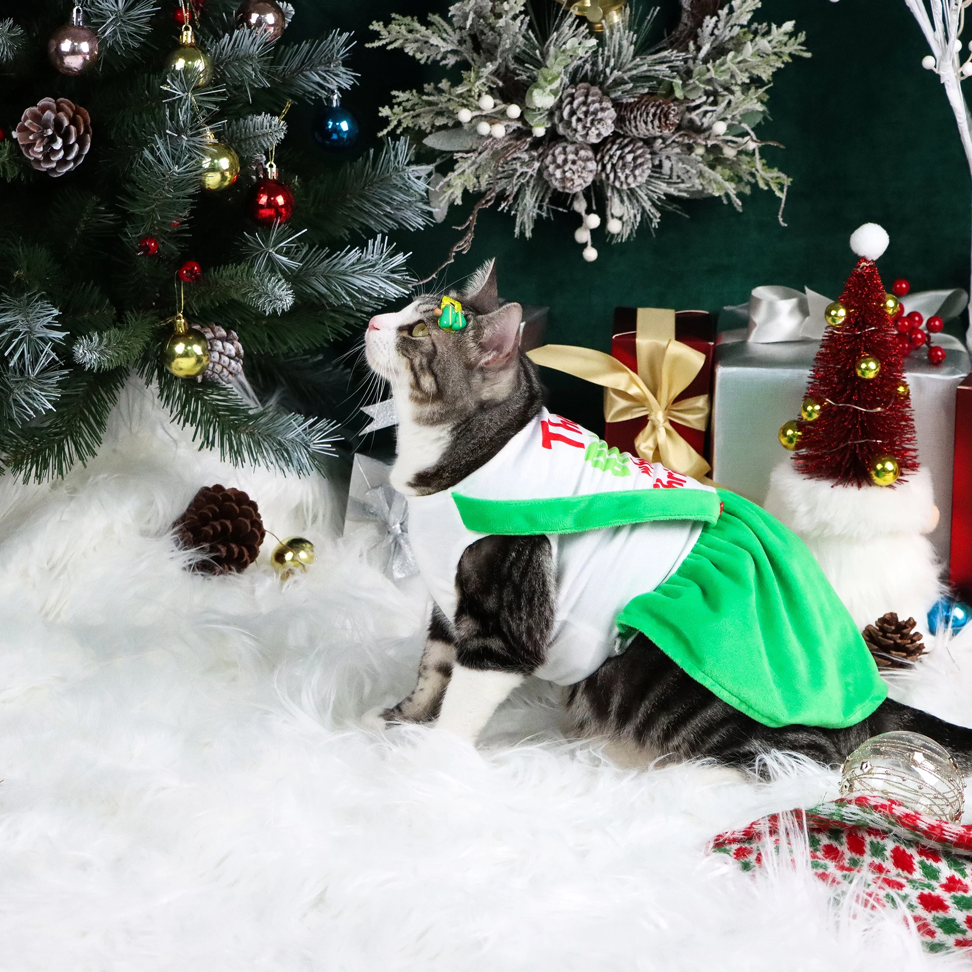Vestidos navideños para perros, ropa cálida para cachorros con lindas letras impresas, disfraz hermoso y cómodo con adornos de corazón, Navidad para perros