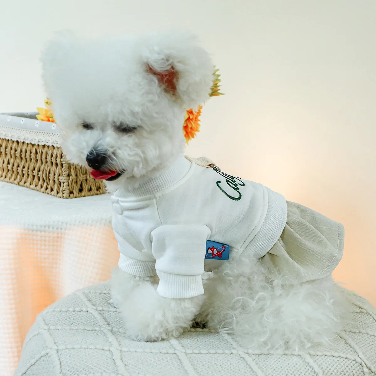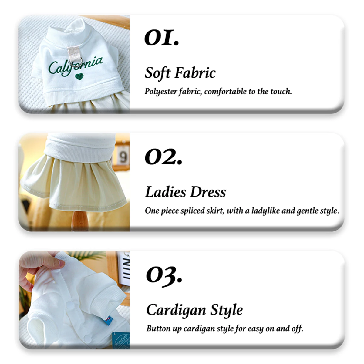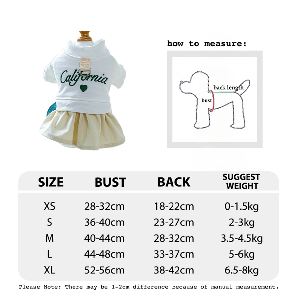 Vestidos de ocio de California para cachorros femeninos, ropa transpirable de poliéster para mascotas, falda con correa para exteriores, monos para gatos Bulldog Francés