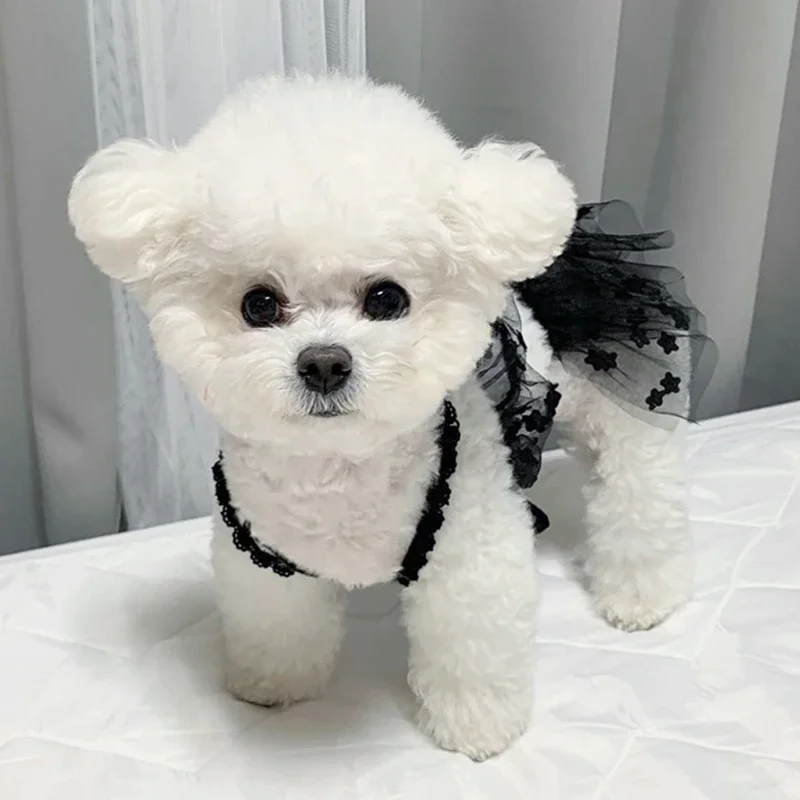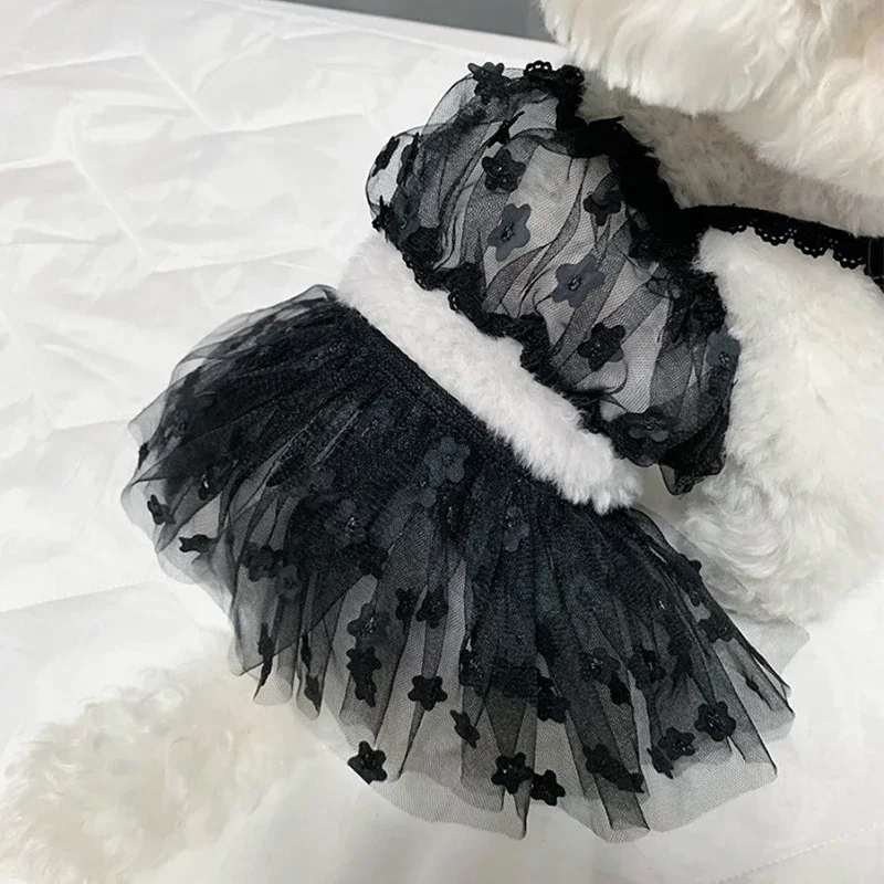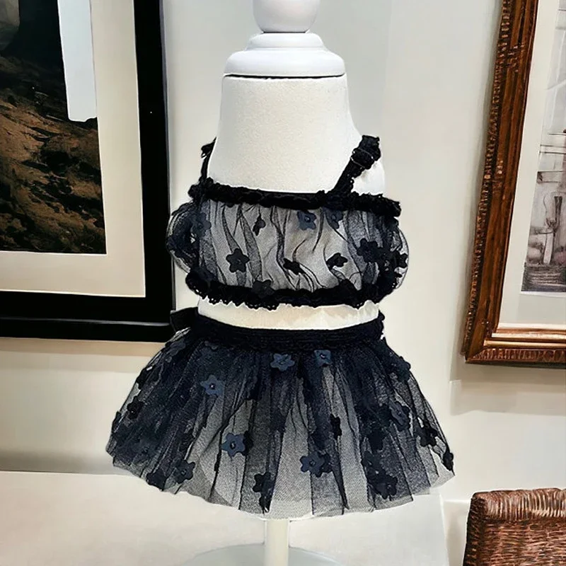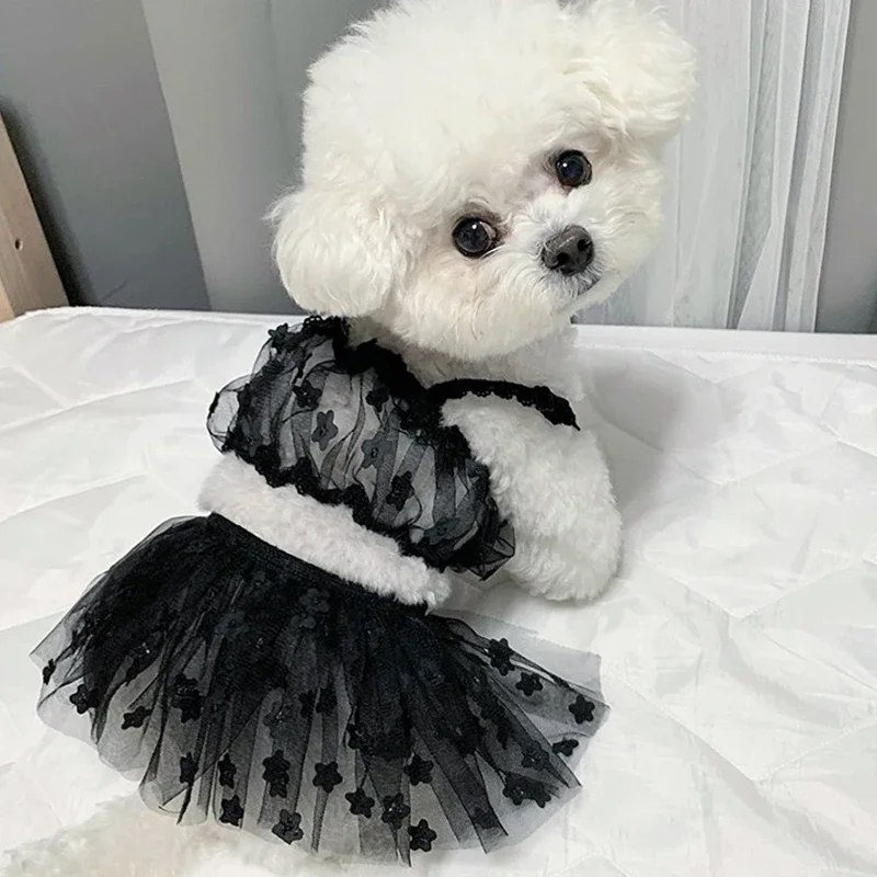 Vestidos para perros de compañía con estrellas, chaleco con tirantes bordados de encaje negro + falda de tul, conjunto de 2 piezas de moda para perros, vestidos para gatos, ropa para cachorros