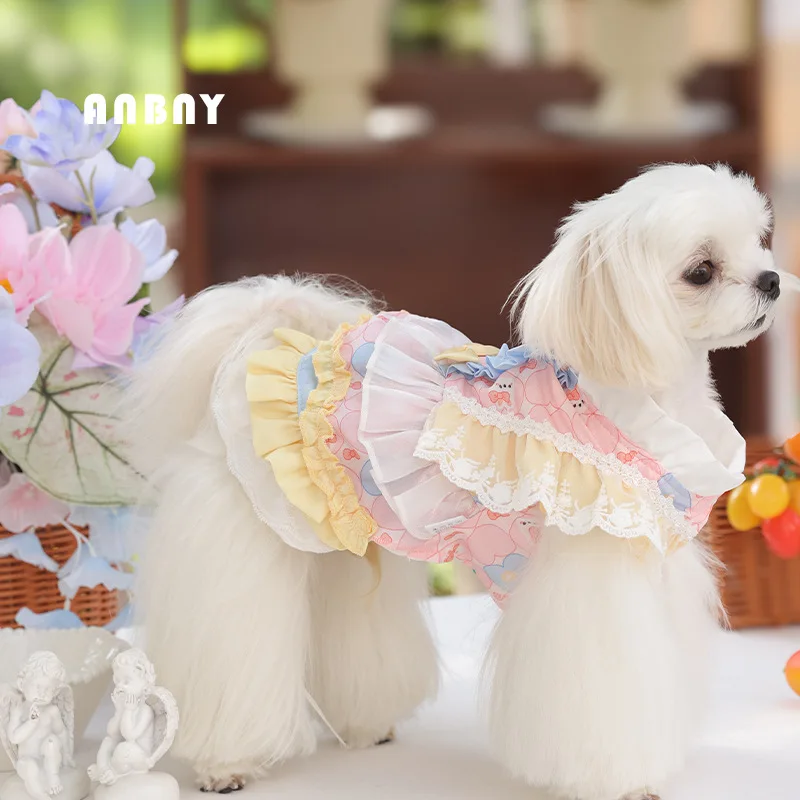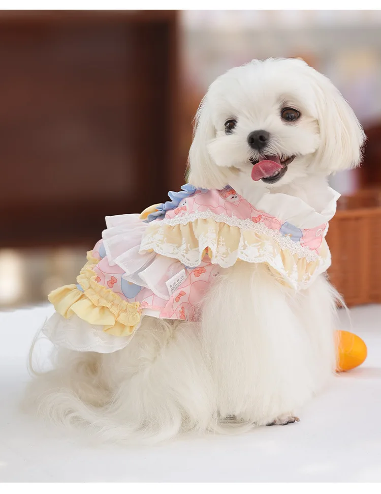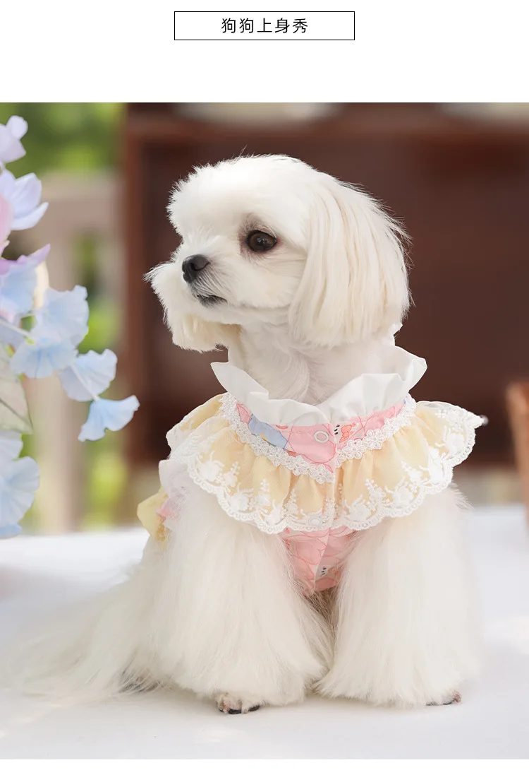 Vestidos de princesa de lujo para perros, faldas para perros Lolita para primavera y otoño, disfraz hecho a mano, falda de encaje de alta calidad, ropa para perros pequeños