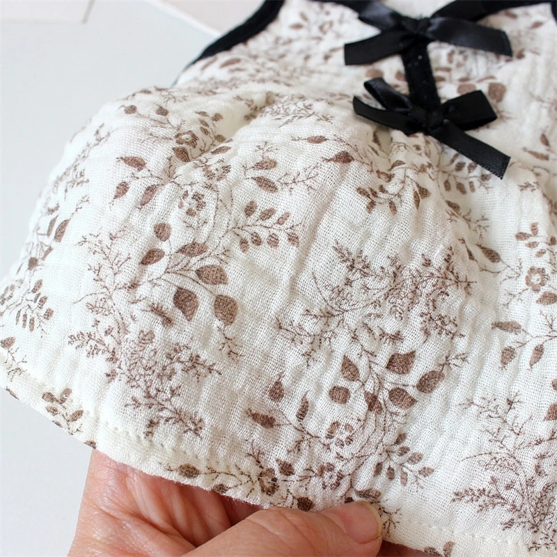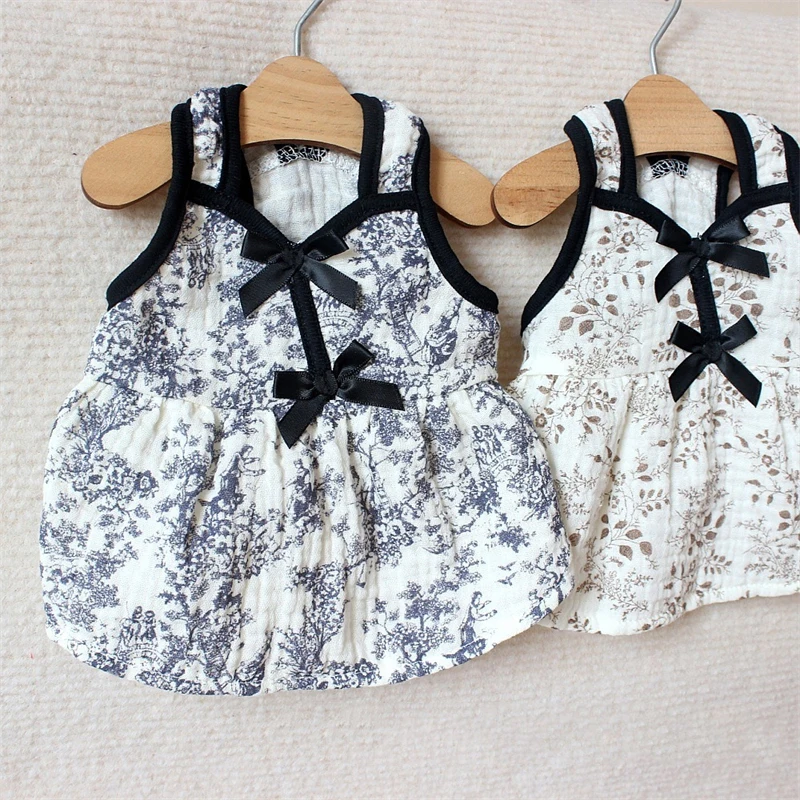 Vestidos de verano de algodón antiguo para cachorros, cuello en V, estampado de tinta, ropa para perros pequeños y medianos, chaleco con pajarita Floral, vestidos transpirables para gatitos