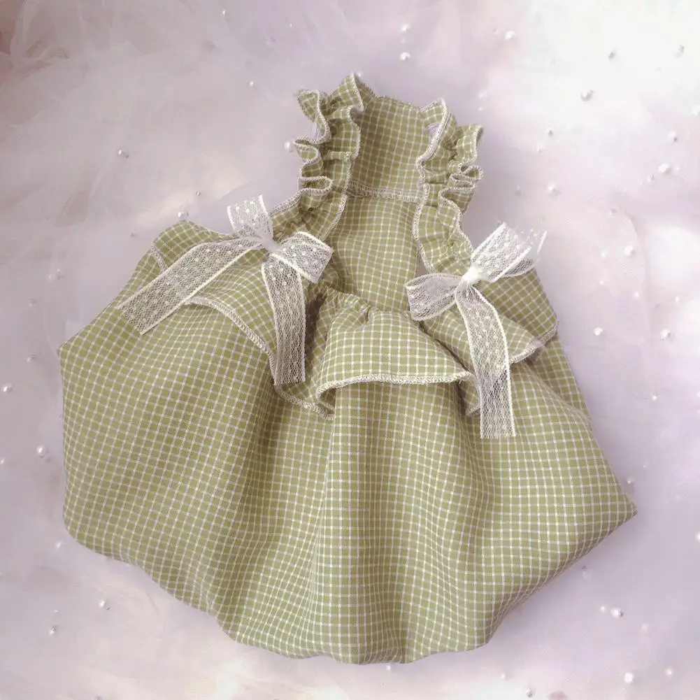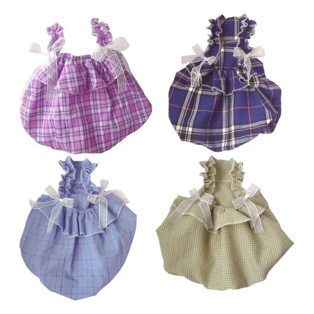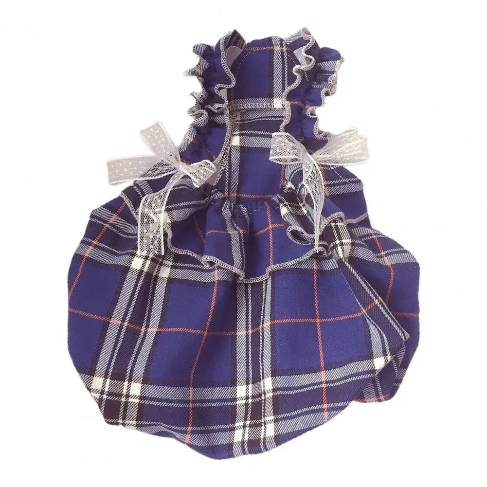 Lo que el vestido para mascotas puede ofrecerle es que es suave y elástico, y el perro no se siente apretado cuando lo usa. Hace que el perro se vea más elegante y atractivo debido al elegante fondo de linterna y al diseño de estampado a cuadros.
