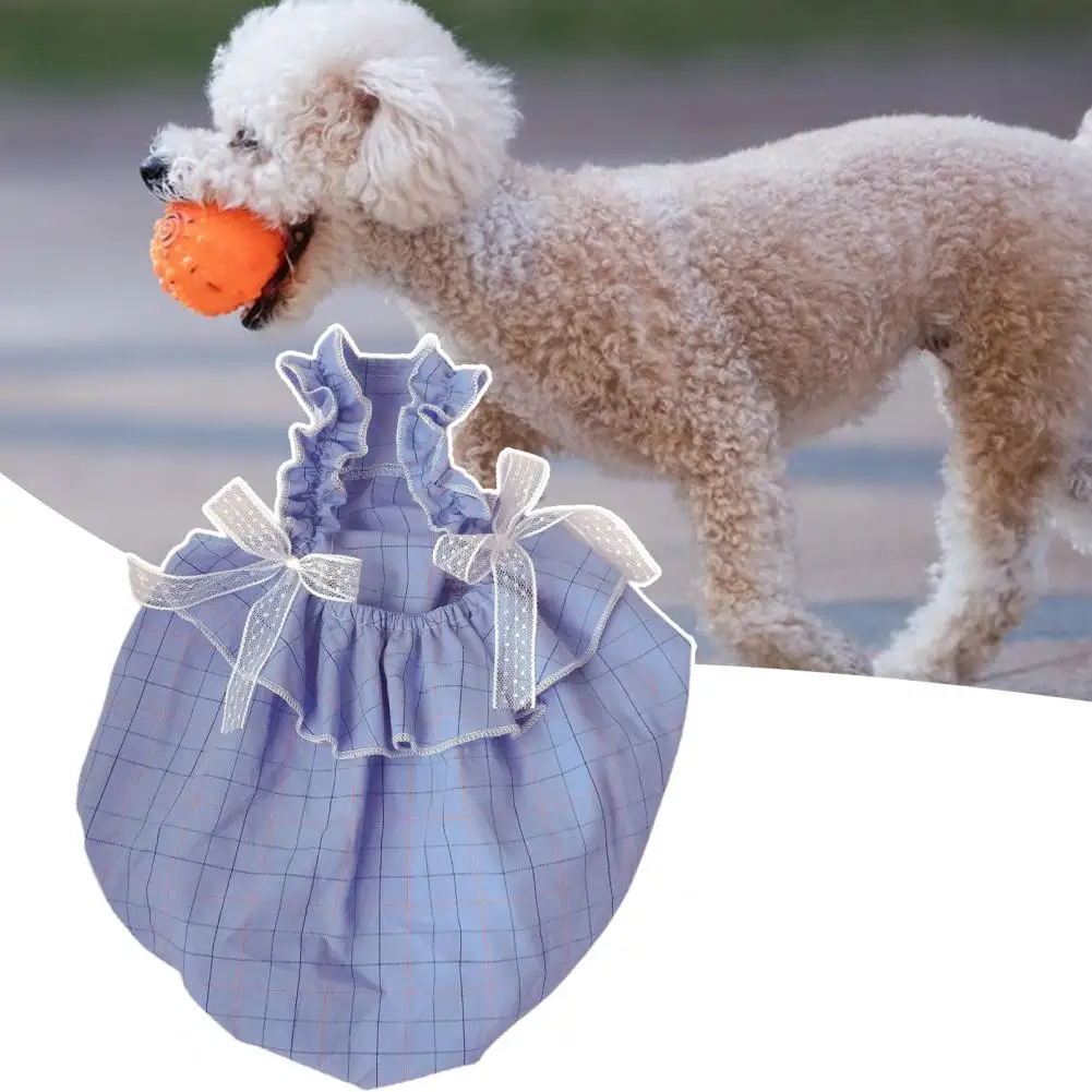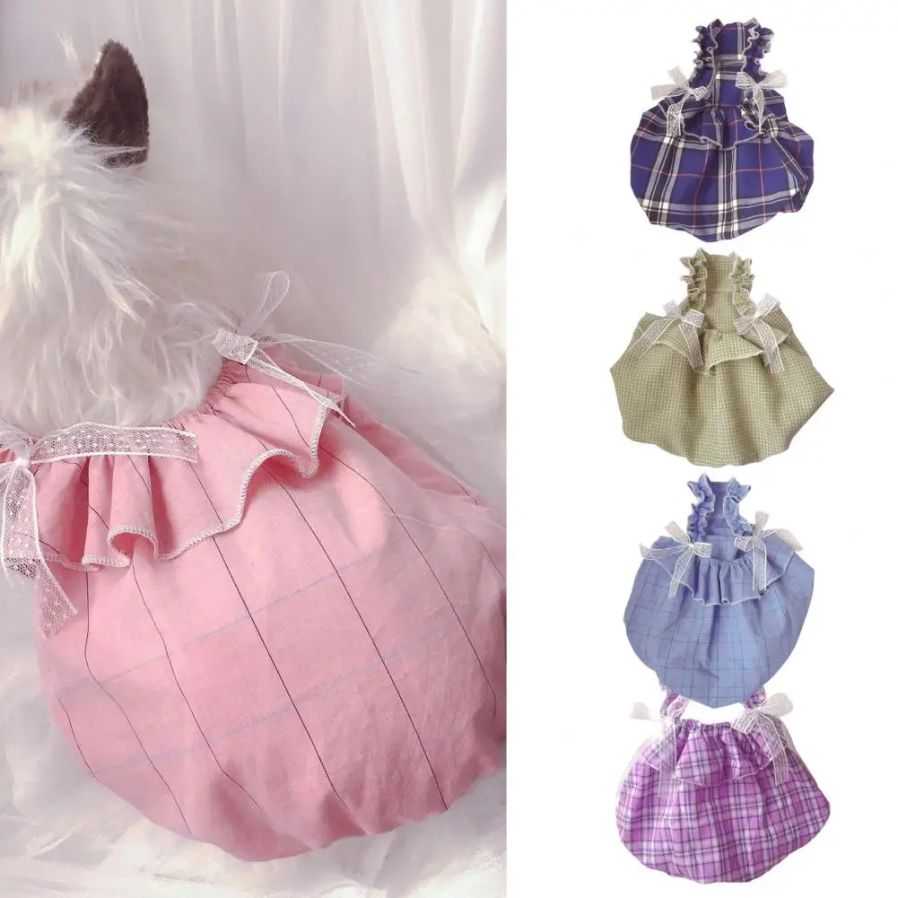 Vestido para mascotas, corbata con lazo, patrón a cuadros, linterna inferior, chaleco para mascotas, ropa sin mangas para cachorros para exteriores