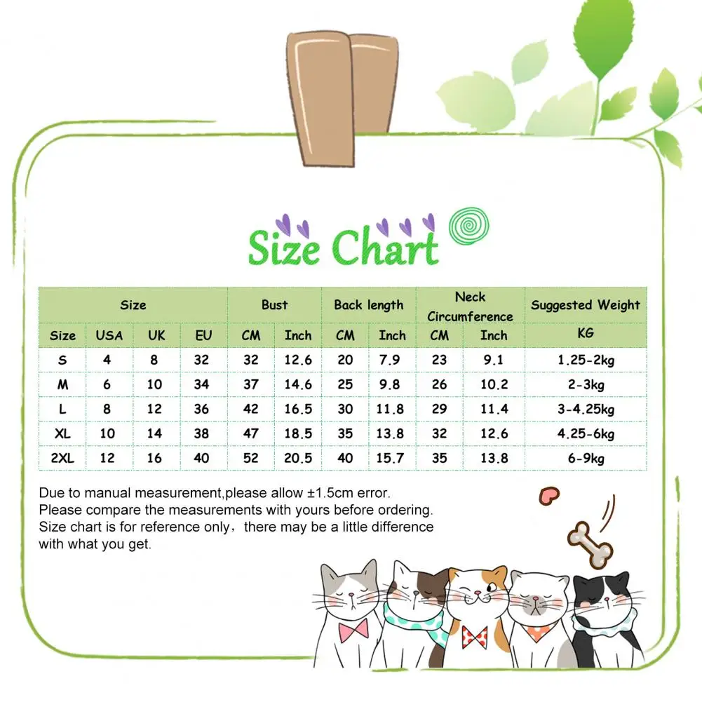 Tamaño: S, longitud de espalda: 20cm/7,9 ", busto: 32cm/12,6", circunferencia del cuello: 23cm/9,1 ", peso recomendado: 1,25-2kg (aprox.)