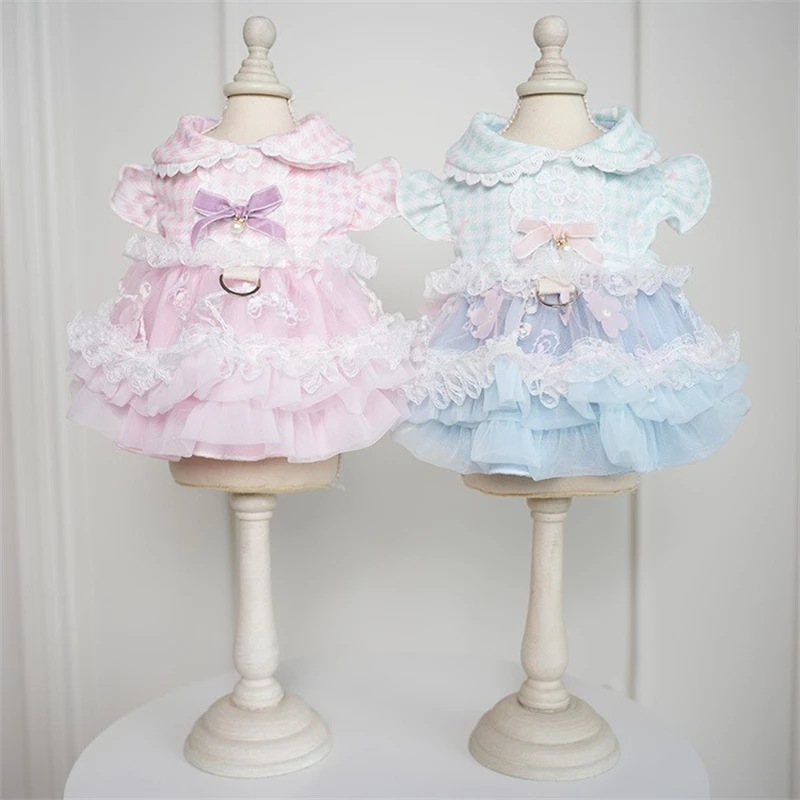 Vestidos de verano de princesa en capas para perros y mascotas, falda romántica de Bulldog Francés para mujer, velo de una pieza de encaje, ropa bonita para gatos