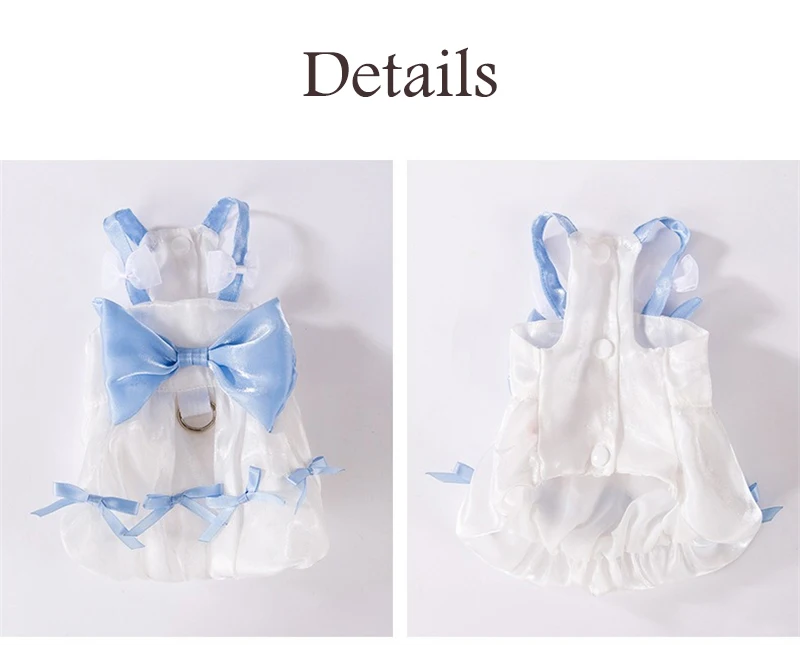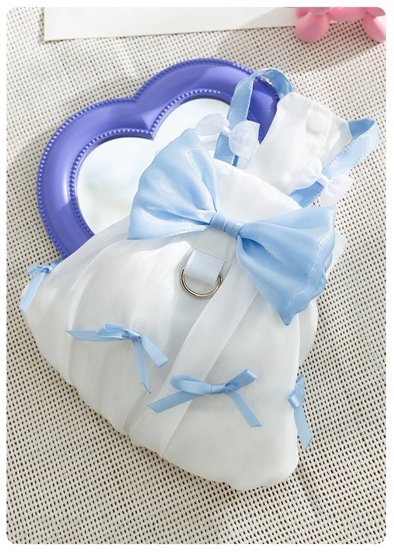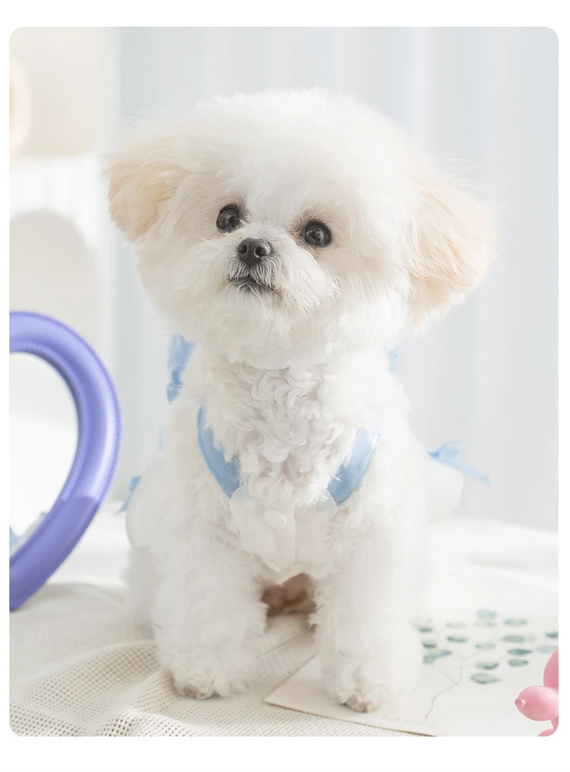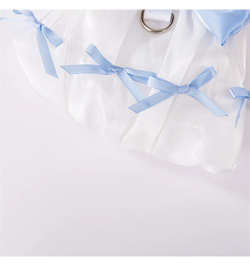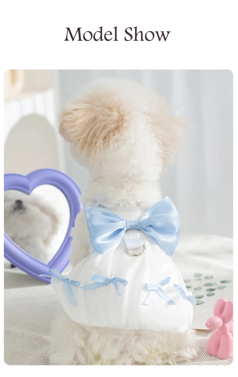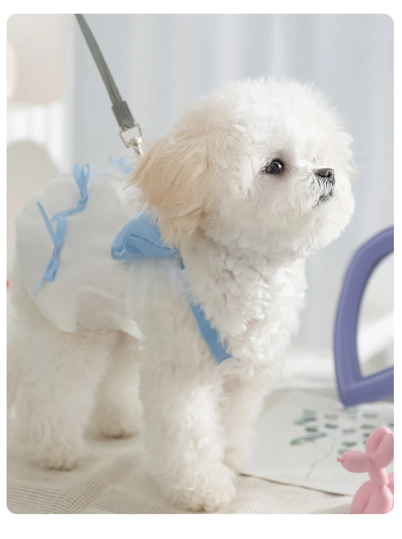 Vestidos de verano de tul transpirable para perros pequeños y medianos, mono con nudo de lazo azul claro para Gato, cachorro romántico de Chihuahua de una pieza