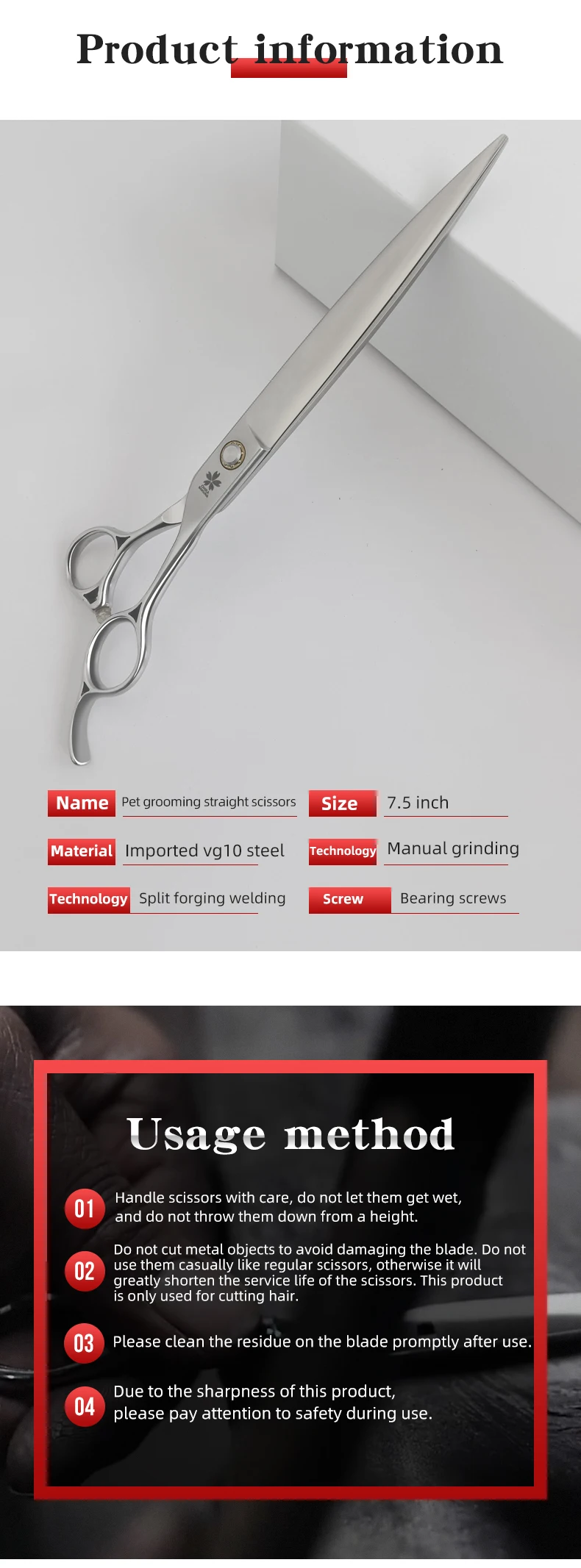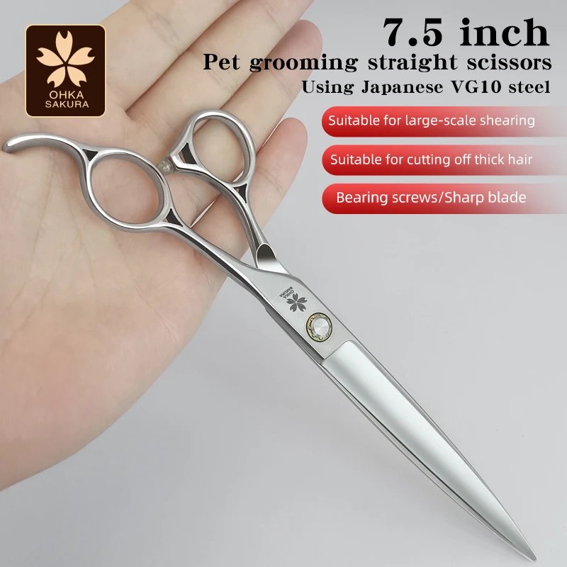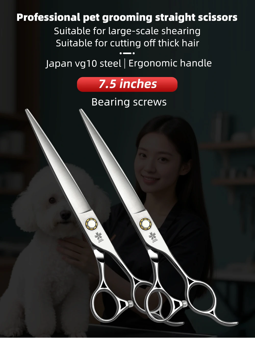 전문 애완 동물 손질 스트레이트 가위 대형 면적 깎기 일본 VG10 강철 7.5 인치 베어링 나사 테디 비숑 학생