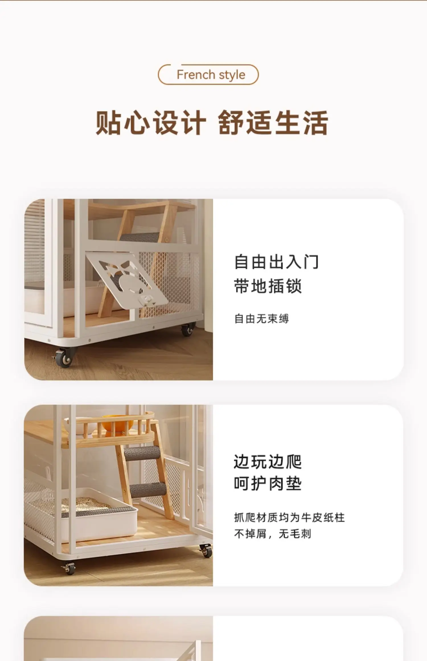 Equipada con una función de jaula para gatos, esta villa garantiza la seguridad de su mascota al tiempo que le permite explorar e interactuar libremente con su entorno.