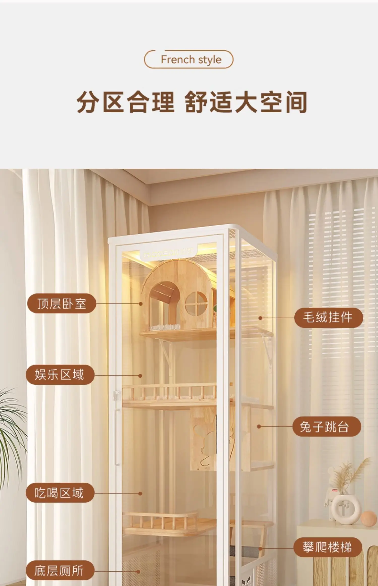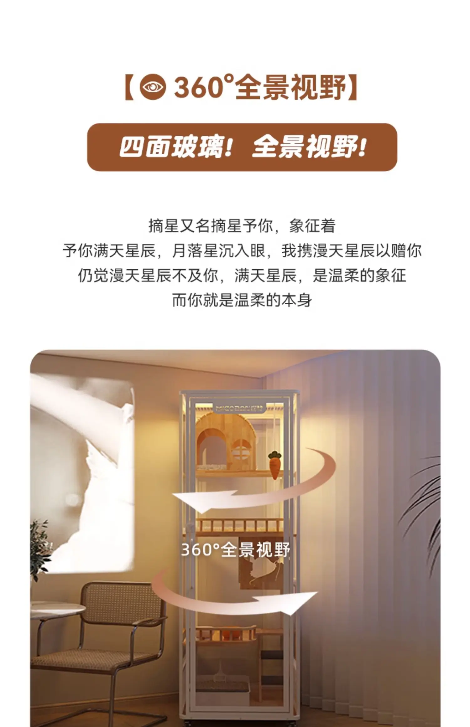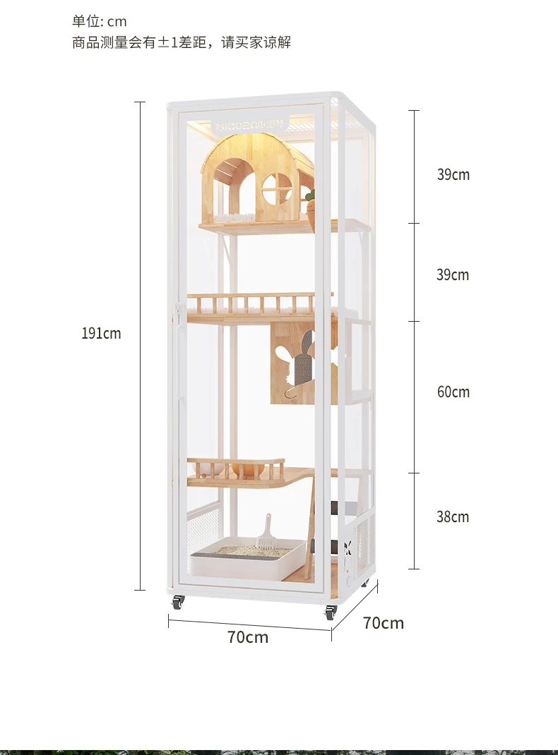 La villa para gatos presenta un gran diseño de vidrio panorámico, que brinda a su amigo felino una vista clara de su entorno y un amplio espacio para jugar y descansar.