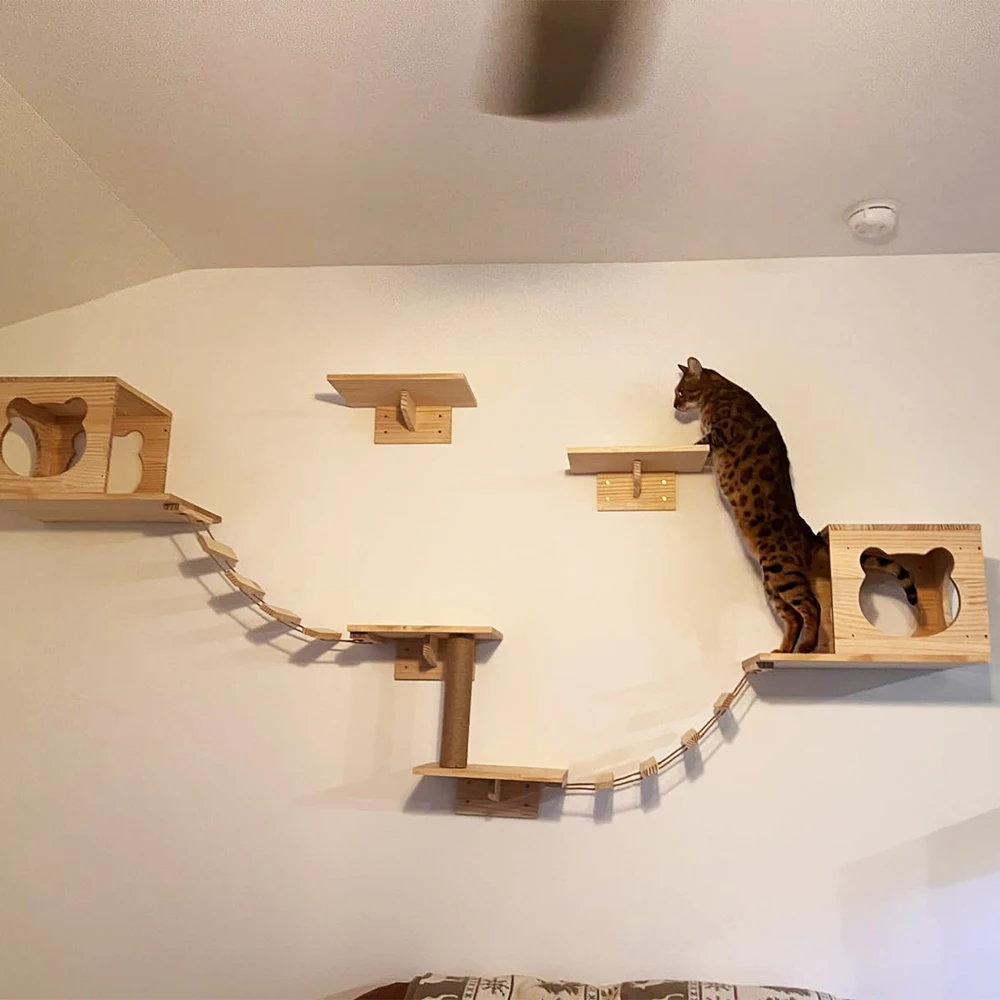* Toys - The owner can put the cat's favorite toys on the cat wall, and the cat will climb to play with the toy.