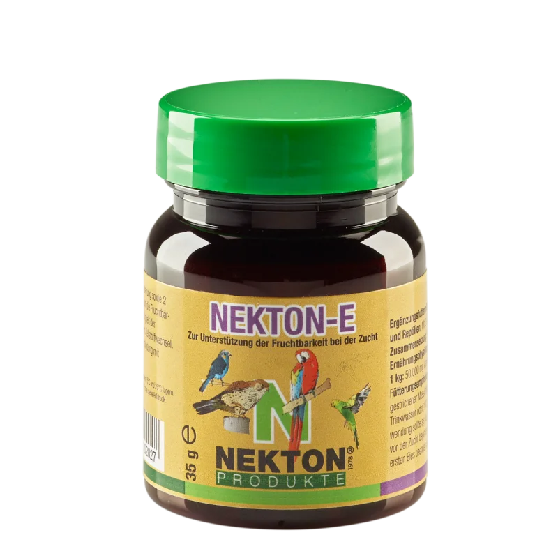 NEKTON-E está especialmente indicado para estimular el instinto reproductor de las aves porque actua sobre los órganos reproductores y las hormonas sexuales, aumentando la fertilidad y el apetito sexual.