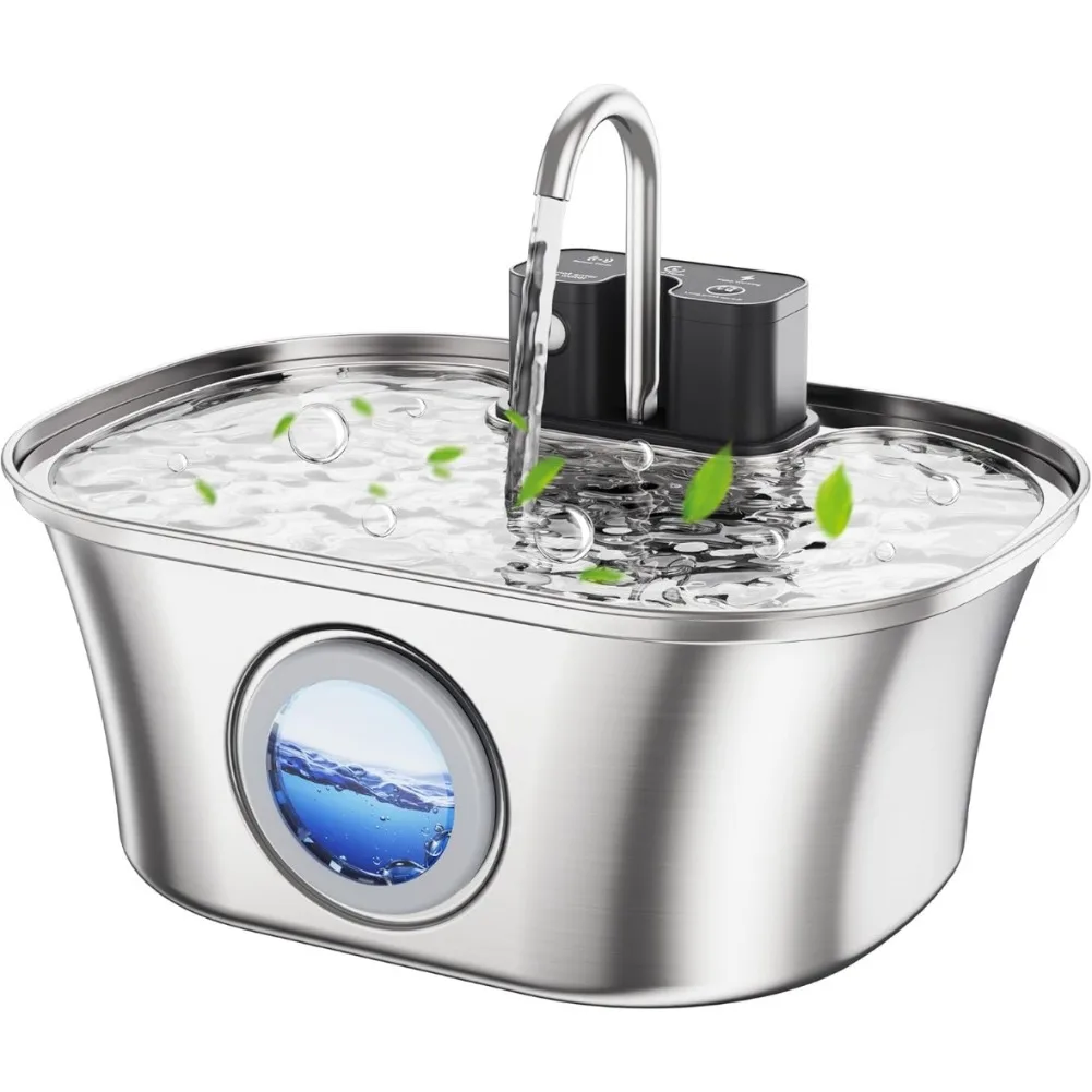 Fuente de agua inalámbrica para gatos de 3,2 l/108 oz de acero inoxidable con batería