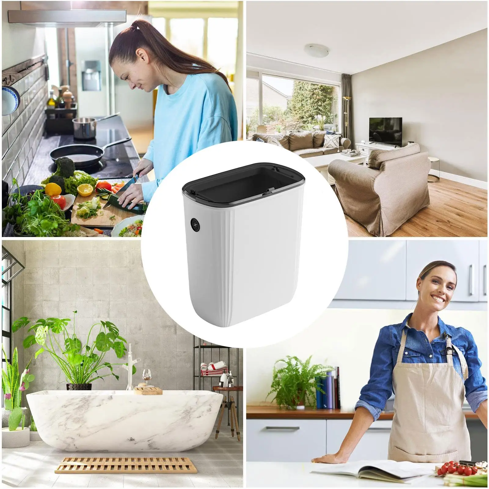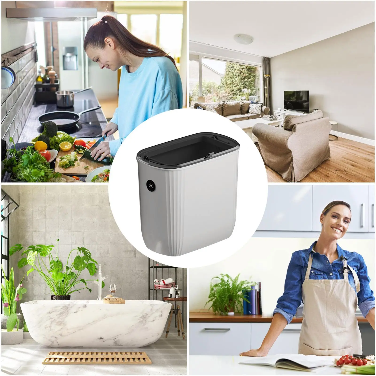 4.Hygienic Coffee Grounds Solution: Designed for effortless organic waste management, the countertop trash can with lid incorporates double seal technology to block odors and supports convenient hand operations, proving invaluable when disposing of coffee grounds or preparing meals, as it seamlessly blends hygiene, simply, and efficiency into everyday kitchen activities