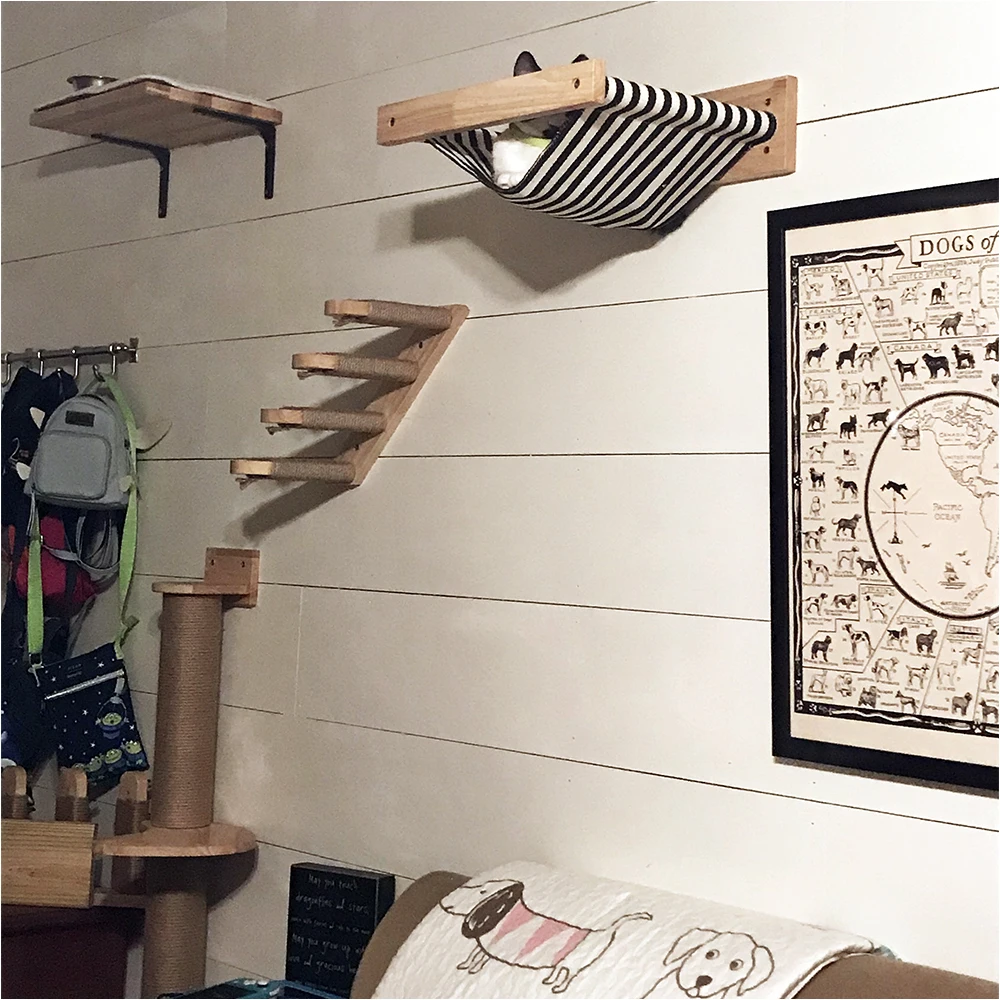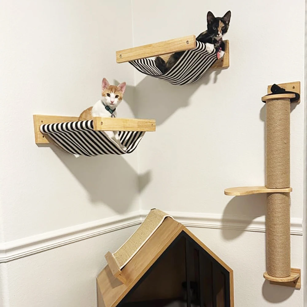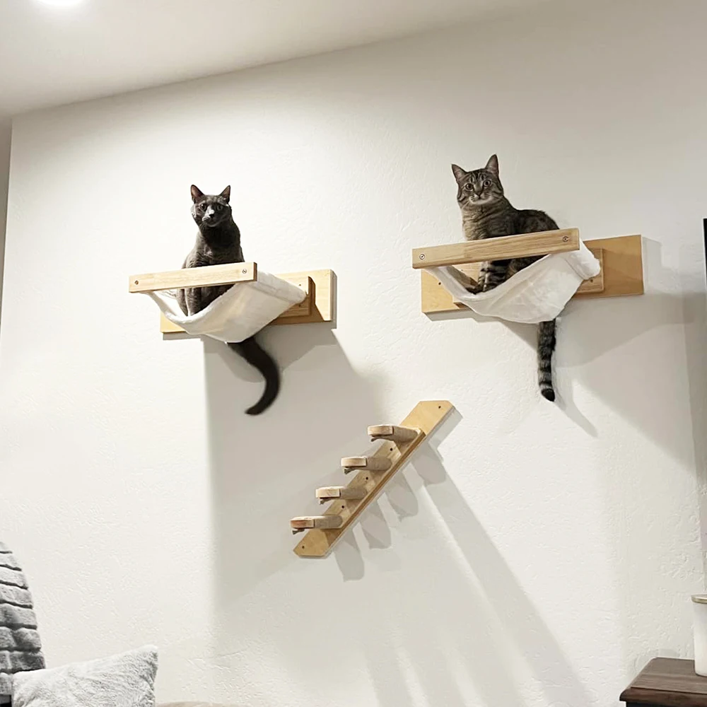 Nuestros muebles de pared para gatos satisfacen las necesidades instintiva de su gato para escalar y descansar. Con múltiples plataformas y superficies raspadables, es el parque infantil perfecto para que tu amigo felino se mantenga activo y contento.