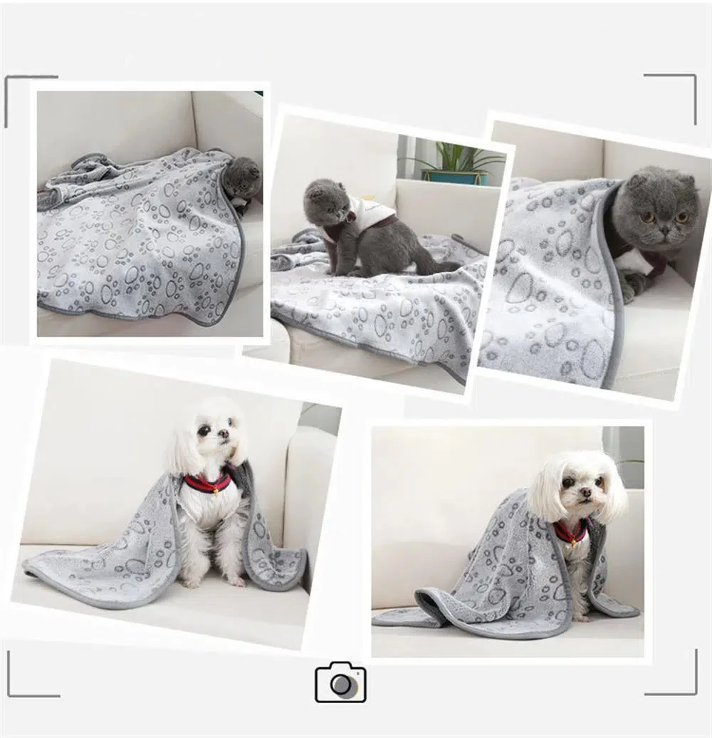 【MANTELA SUAVE PREMIUM PARA PERROS】 Esta suave manta para mascotas está hecha de 100% franela de doble cara (poliéster), que es muy suave, liviana y cálida y no pierde pelo ni se decolora fácilmente.Está especialmente diseñado para que las mascotas creen un hogar cómodo para ellos durante todo el año.¡A los perros y a los gatos les encantará esta manta con lindas huellas de patas en la superficie!