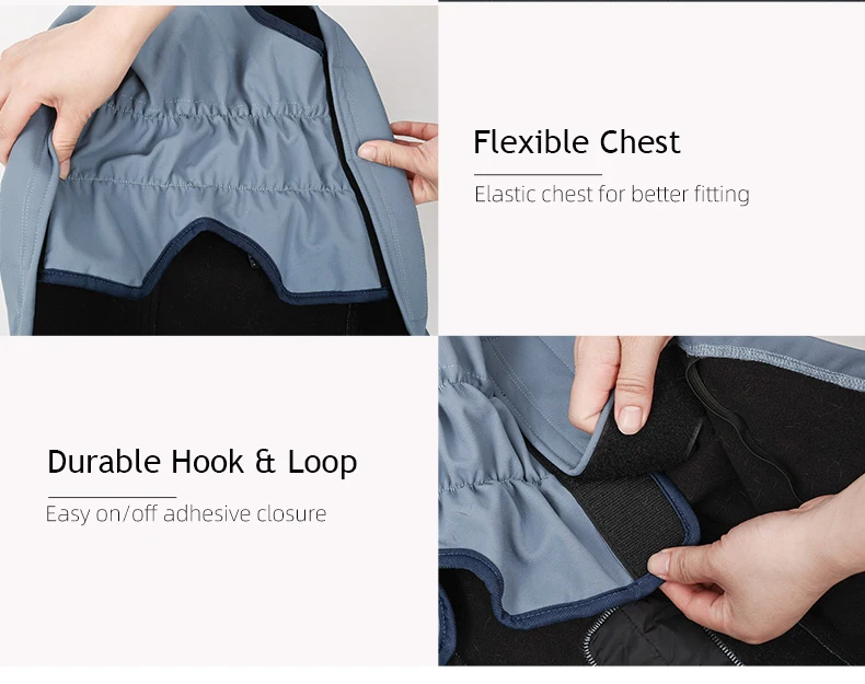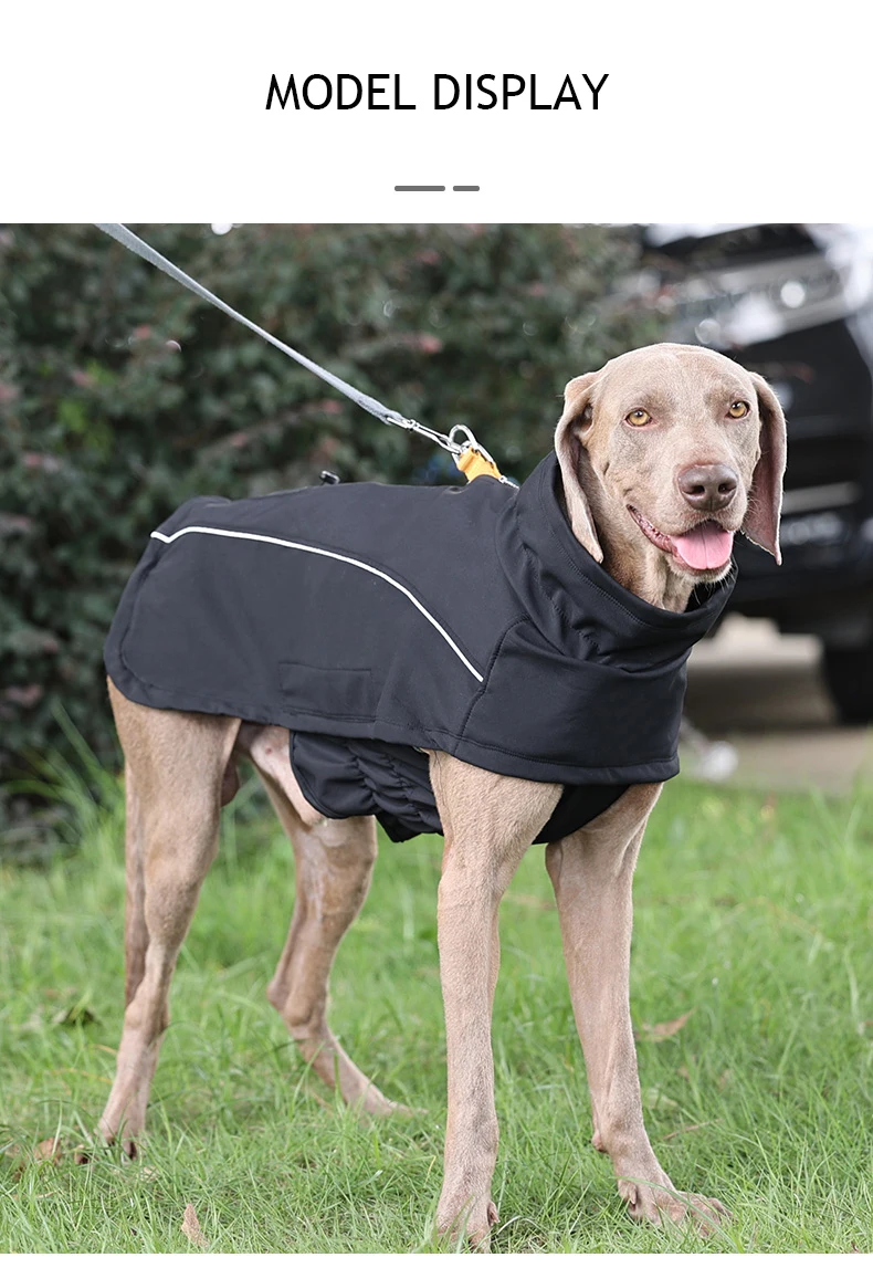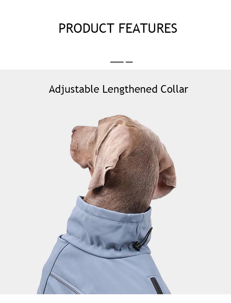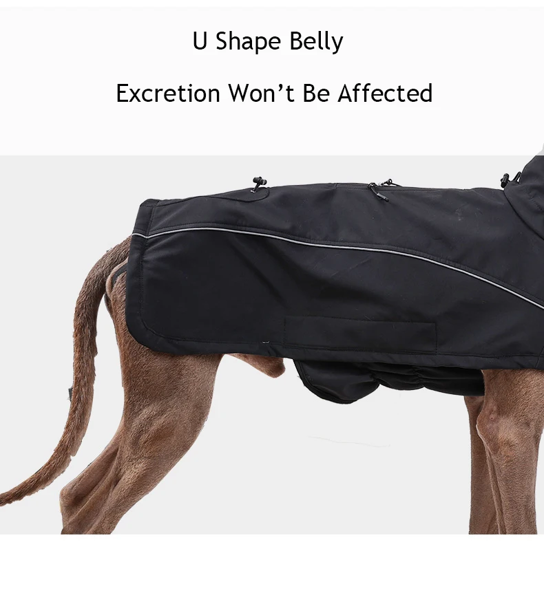 Podría ser un poco más largo para mi mezcla de Border Collie (16 kg). Material cómodo y, con suerte, impermeable.