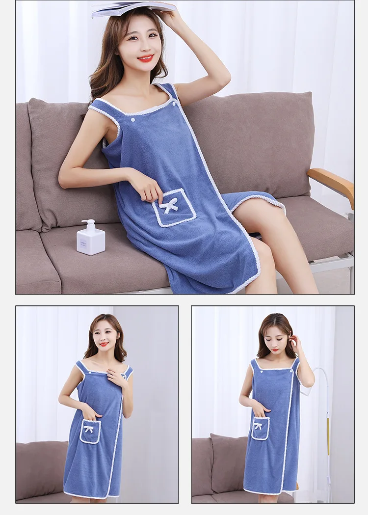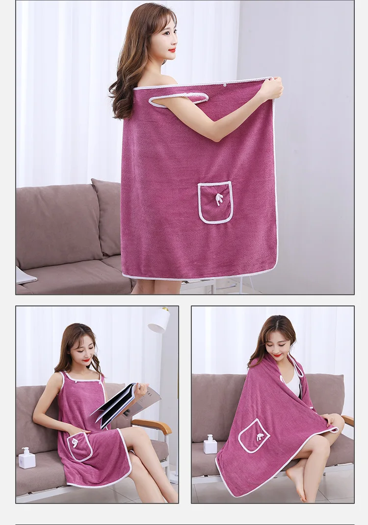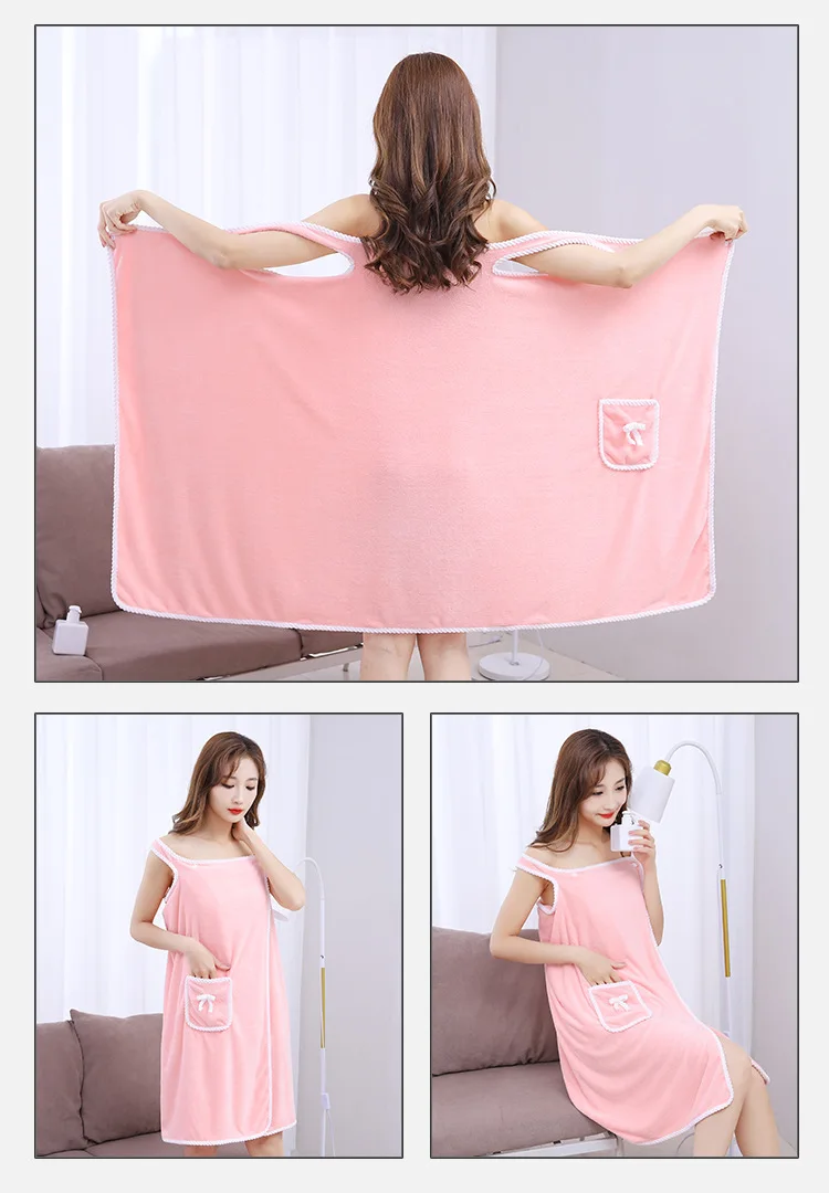 Toallas de baño de estilo portátil, toalla absorbente suave, vestido, albornoz grueso que absorbe el agua, camisola usable, toalla de lana Coral