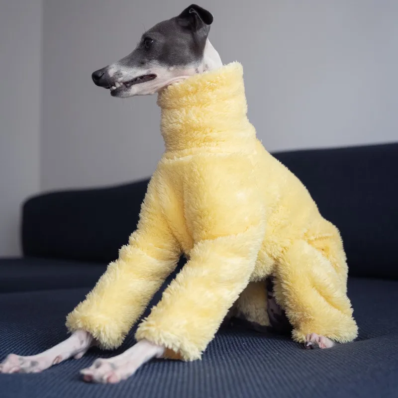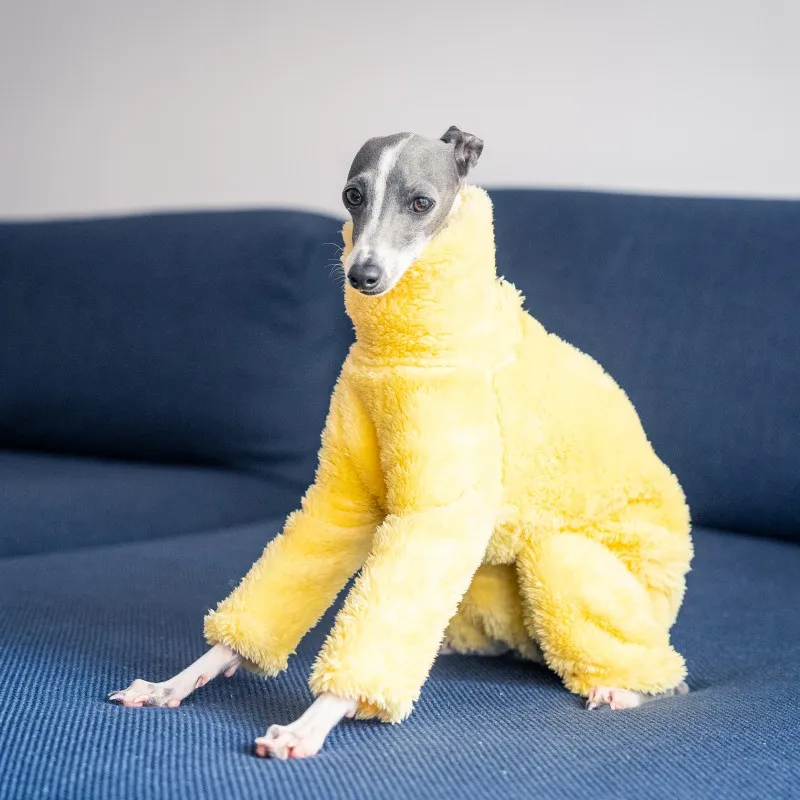 Muy buen traje para galgos italianos. Bien proporcionado con buen ajuste. La abertura elástica es excelente, ya que tira del pecho para un ajuste perfecto. Gran atuendo.