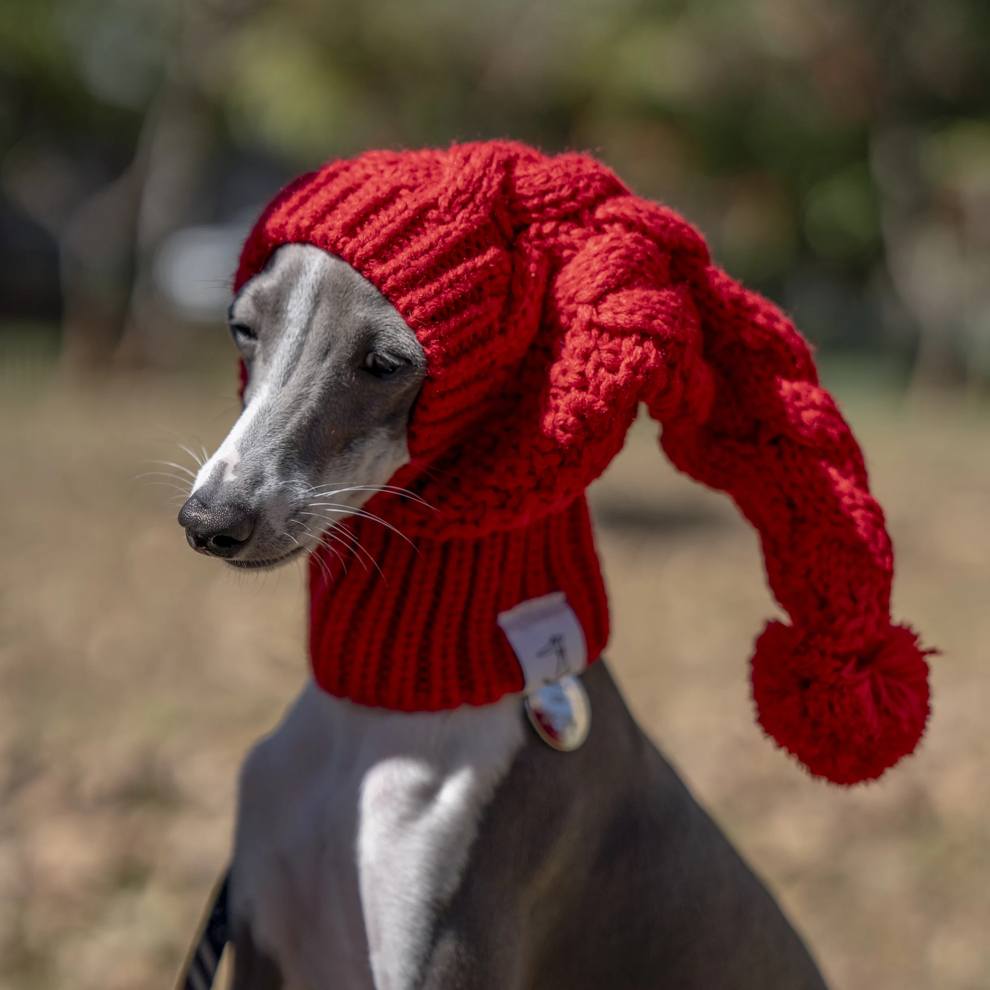 Sombrero de lana de invierno Whippet, sombrero rojo para mascotas, Galgo Italiano, regalo de Navidad con bola de piel, sombrero para perro