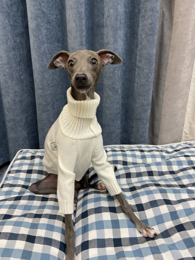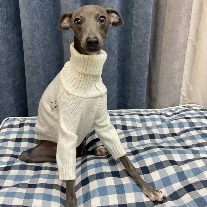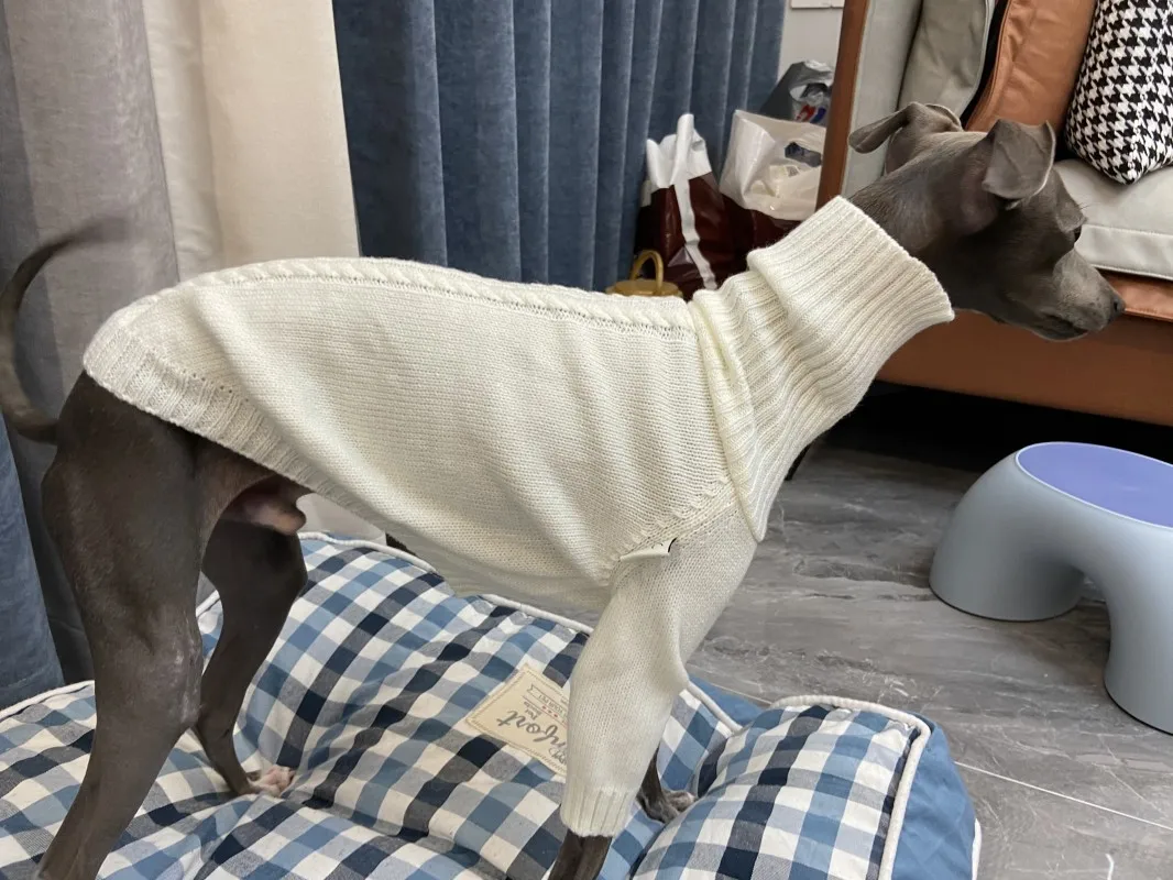 Suéter de Whippet blanco Cuello alto Suéter de invierno de espíritu italiano suave Suéter cálido de punto Suéter pequeño mediano