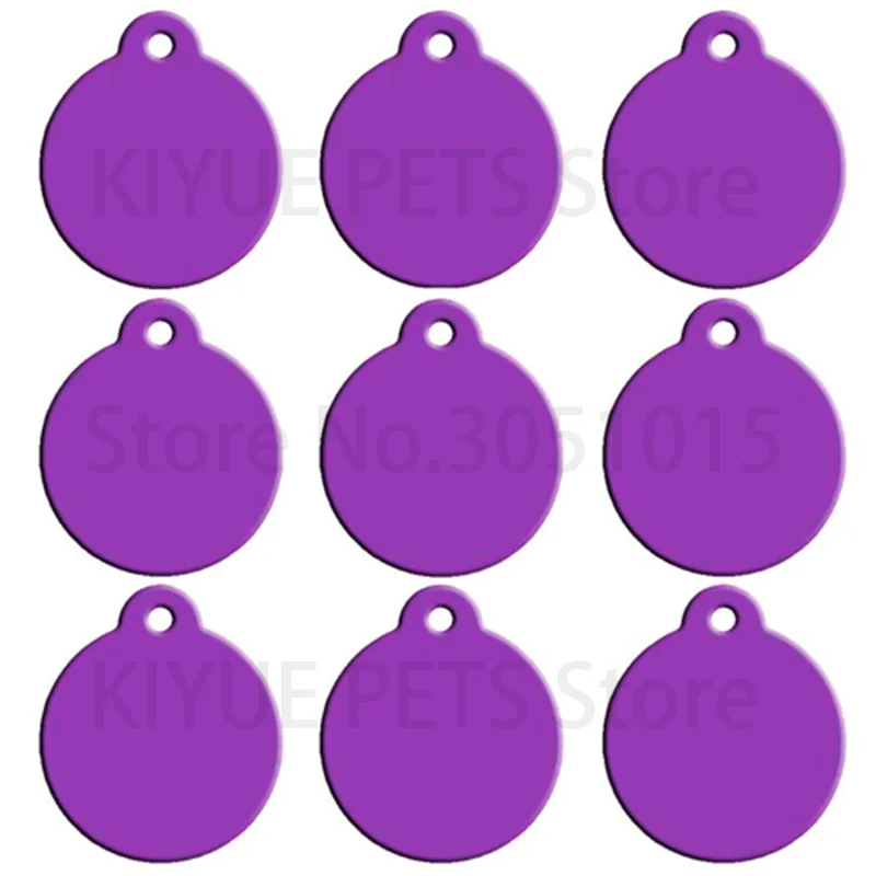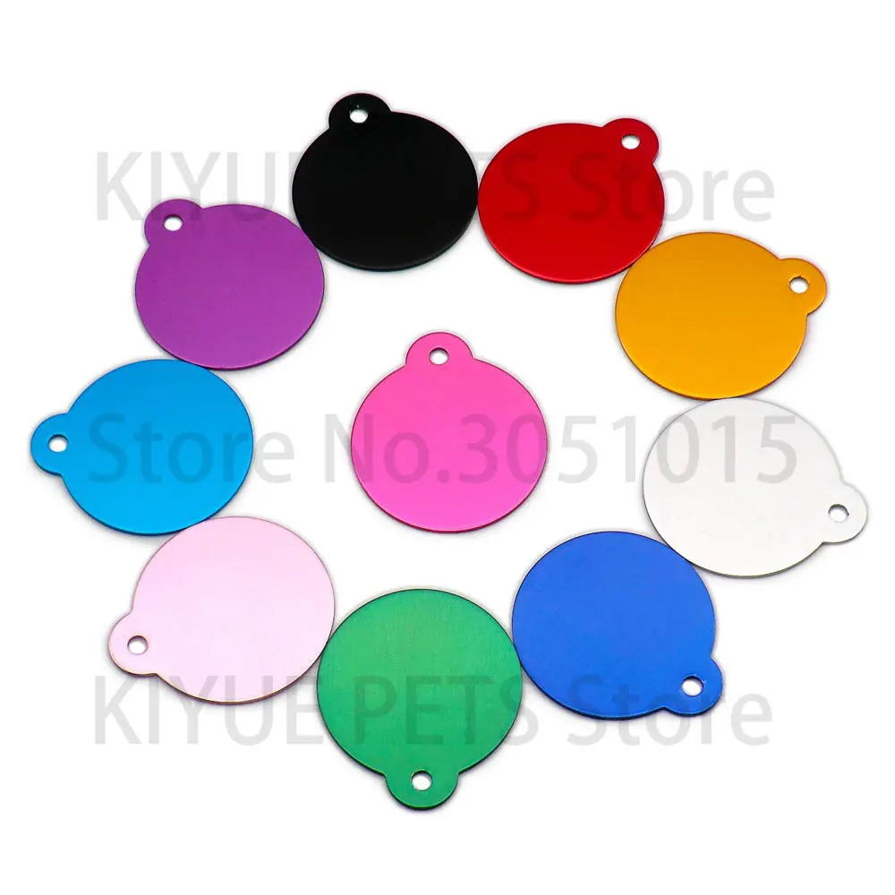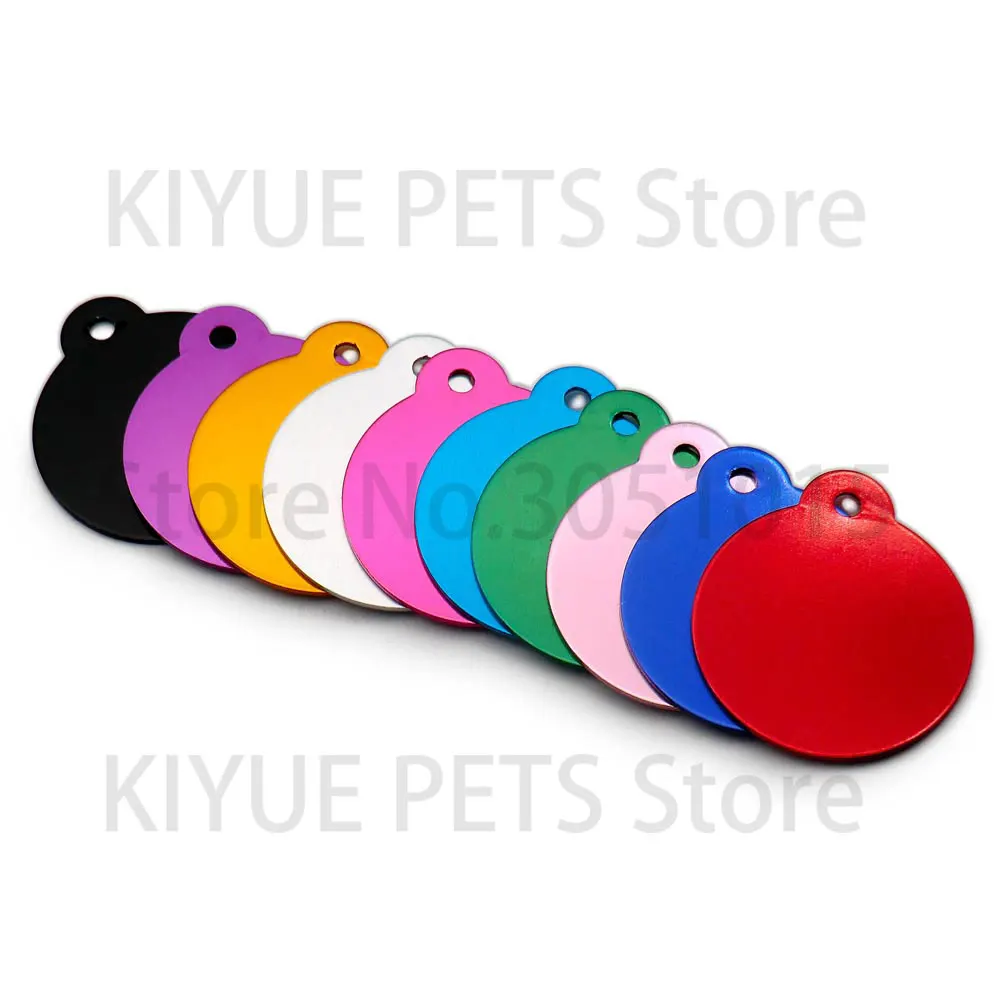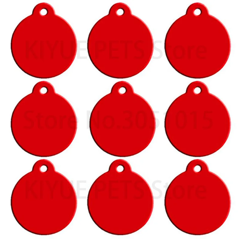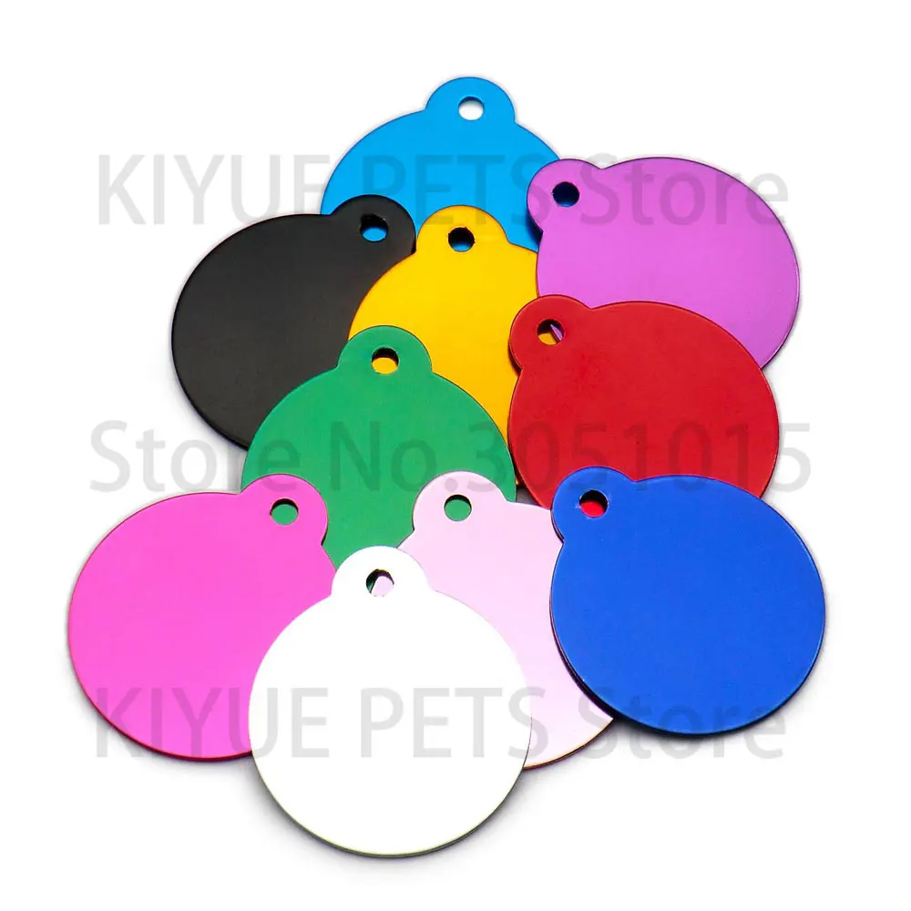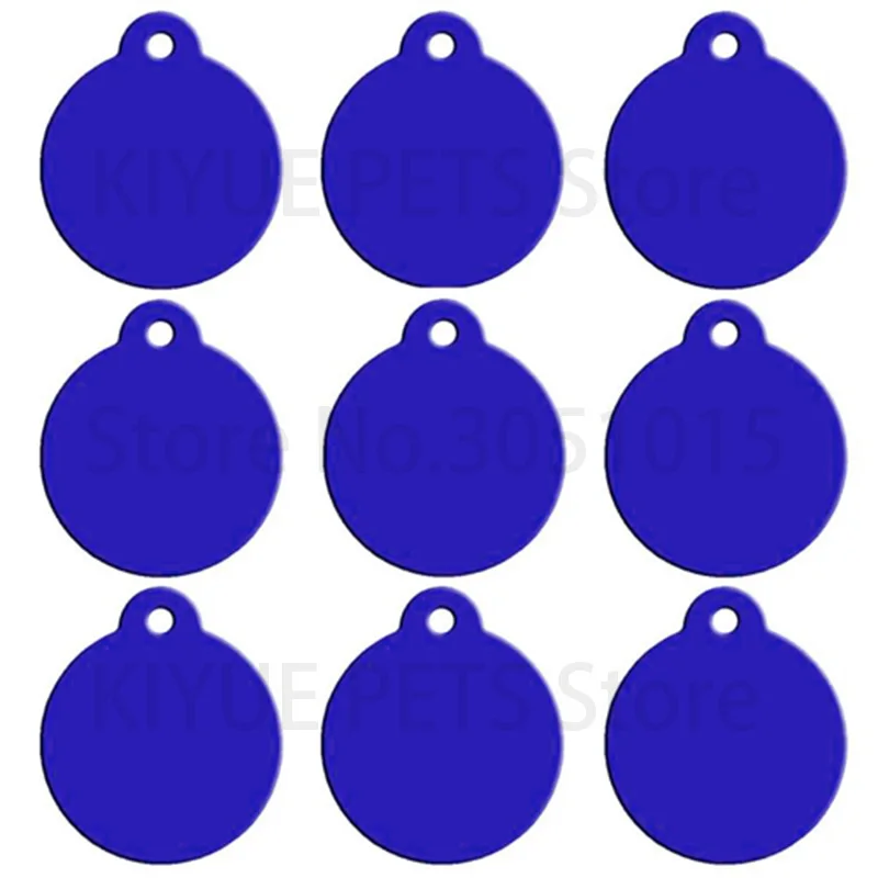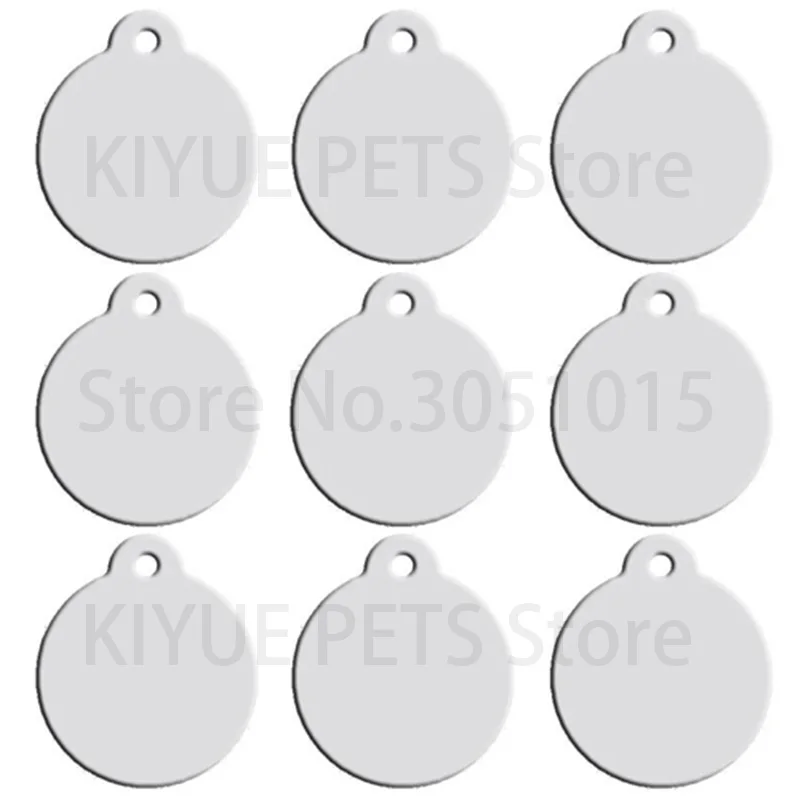 Venta al por mayor 100 etiquetas de identificación para perros y mascotas, placa colgante, etiqueta perdida, cachorro, gato, nombre, dirección, etiqueta, collar redondo, llaveros, accesorios