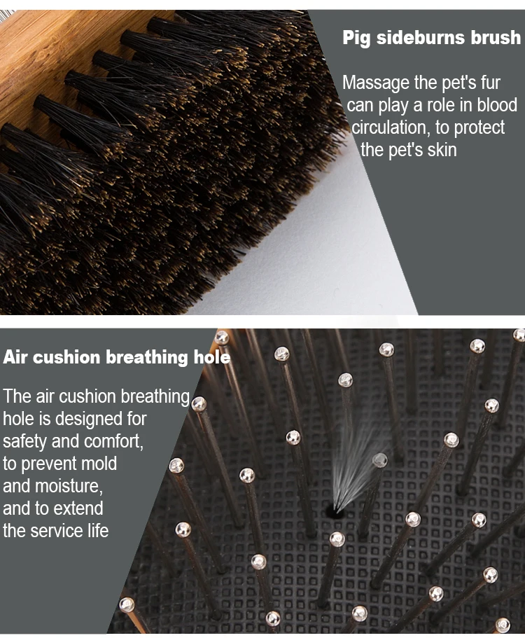 3.Cepillo para patillas de cerdo, masajear el pelaje de la mascota puede desempeñar un papel en la circulación sanguínea para proteger la piel de la mascota.