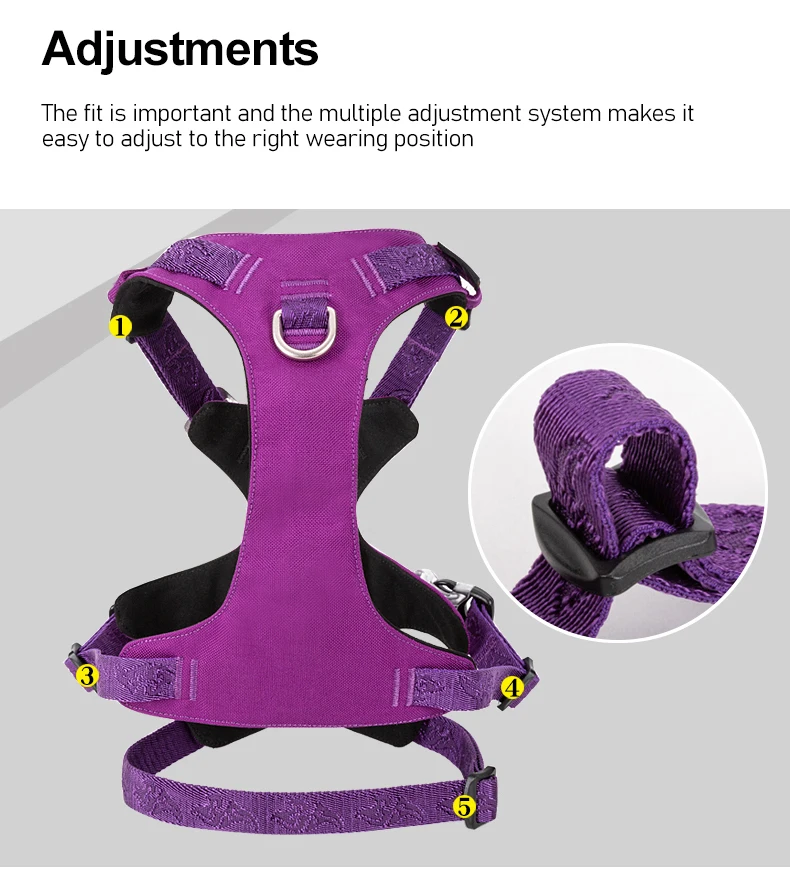 El ajuste multipunto puede adaptarse mejor a la forma del cuerpo del perro, igualar la fuerza, jugar el mejor soporte y efecto envolvente, hacer que el perro sea más cómodo y menos propenso a sufrir lesiones.