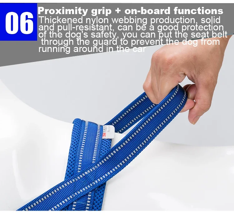 2. La producción de correas de nailon engrosadas, sólidas y resistentes a los tirones, puede ser una buena protección de la seguridad del perro, puede pasar el cinturón de seguridad a través del protector para evitar que el perro corra en el automóvil.