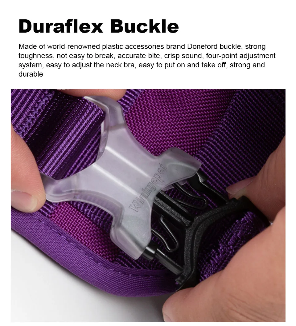 La hebilla está hecha de accesorios de plástico de renombre mundial. Hebilla Duraflex de la marca, que es resistente y duradera, no es fácil de romper, mordida precisa y sonido nítido.Y hay un sistema de ajuste de cuatro puntos, que es fácil ajustar la parte del cuello y poner y quitar.