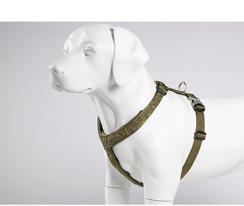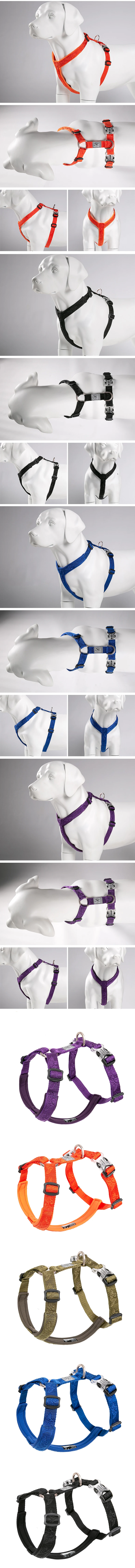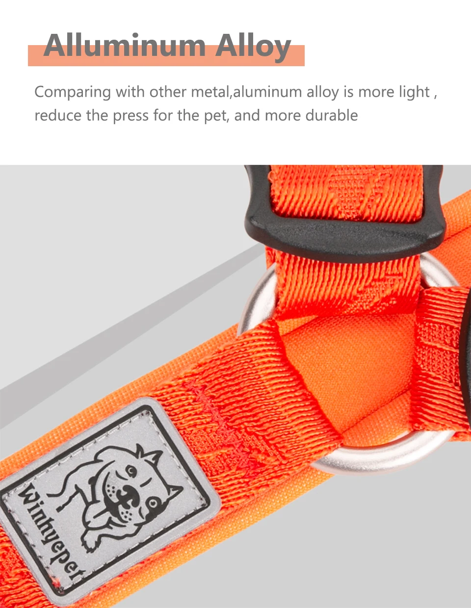 El arnés para mascotas está hecho de correas de hilo de nailon, en comparación con las correas de nailon normales, es más suave y no es abrasivo para la piel del perro, Y este material hace que las correas del arnés para mascotas sean más resistentes y duraderas.