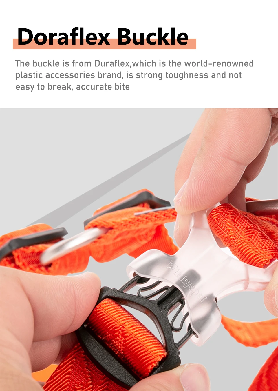 La hebilla está hecha de accesorios de plástico de renombre mundial marca Duraflex hebilla, que es fuerte y duradera, no es fácil de romper, mordida precisa y sonido nítido. Y hay un sistema de ajuste de cuatro puntos, fácil de ajustar la parte del cuello, y para poner y quitar.
