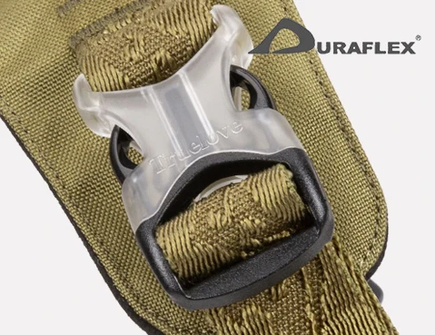 La hebilla está hecha de accesorios de plástico de renombre mundial marca Duraflex hebilla, que es fuerte y duradera, no es fácil de romper, mordida precisa y sonido nítido.
