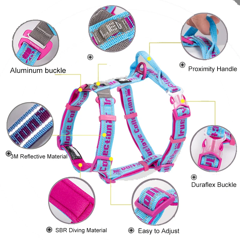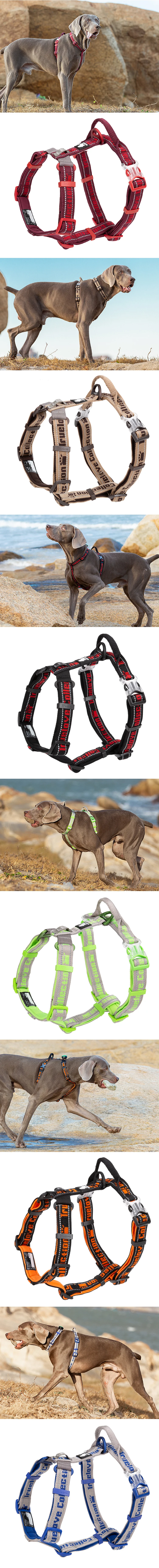 El arnés para mascotas está hecho de correas de hilo de nailon, en comparación con las correas de nailon ordinarias, es más suave y no es abrasivo para la piel del perro, Y este material hace que las correas del arnés para mascotas sean más resistentes y duraderas.