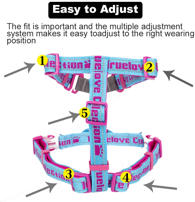 El ajuste es importante y el sistema de ajuste múltiple facilita el ajuste a la posición de uso correcta, lo que brinda a las mascotas más cómodas.