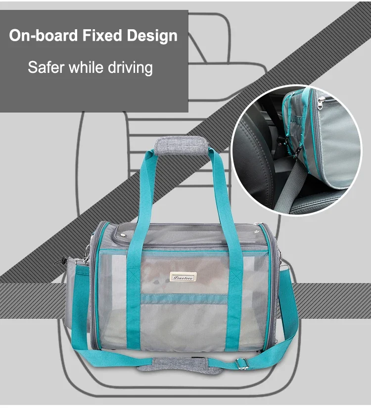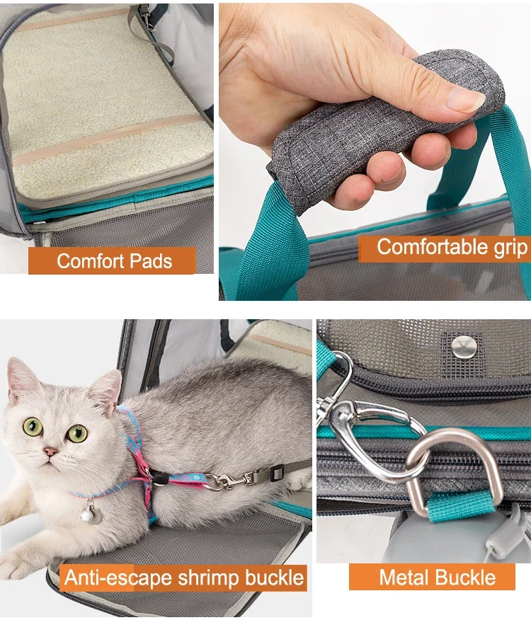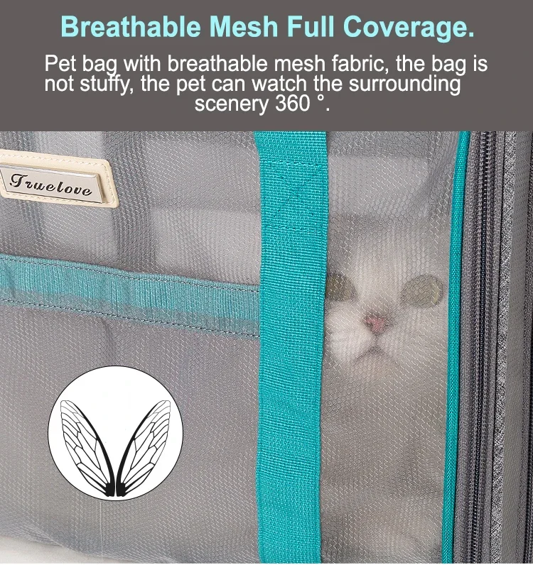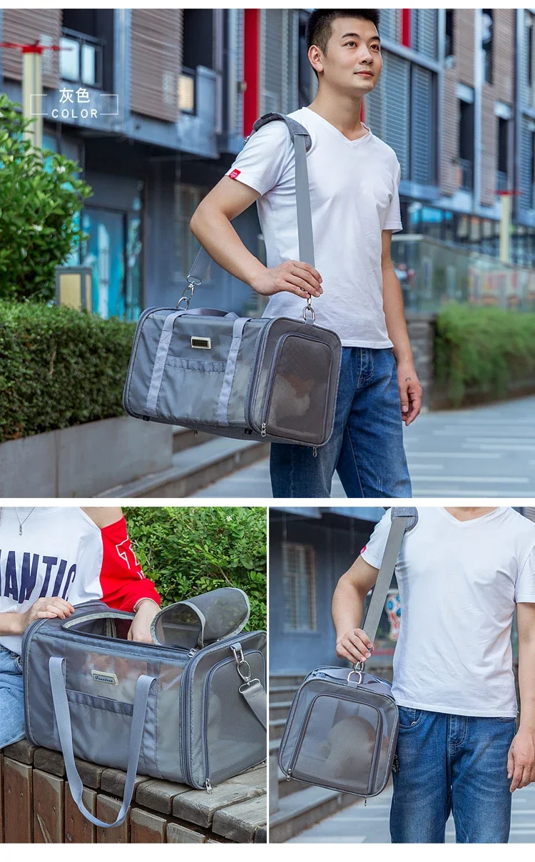 Pet bag with breathable mesh fabric, the bag is not stuffy, the pet can watch the surrounding scenery 360 °.