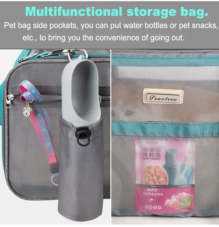 Pet bag side pockets, you can put water bottles or pet snacks, etc., to bring you the convenience of going out.