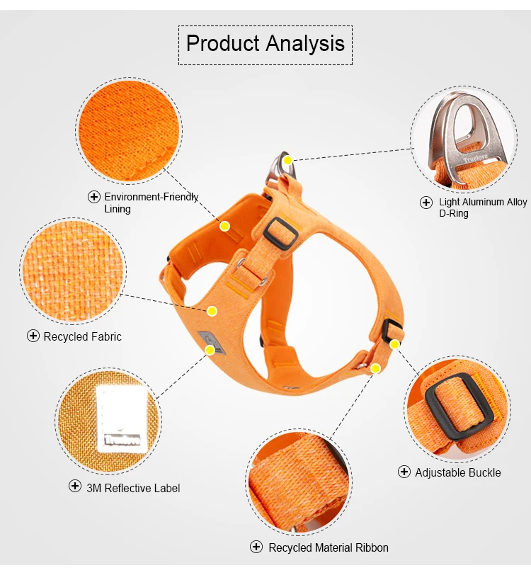 Material:Tejidos reciclados respetuosos con el medio ambiente / reflectante 3M / hebilla de aluminio / correas recicladas respetuosas con el medio ambiente